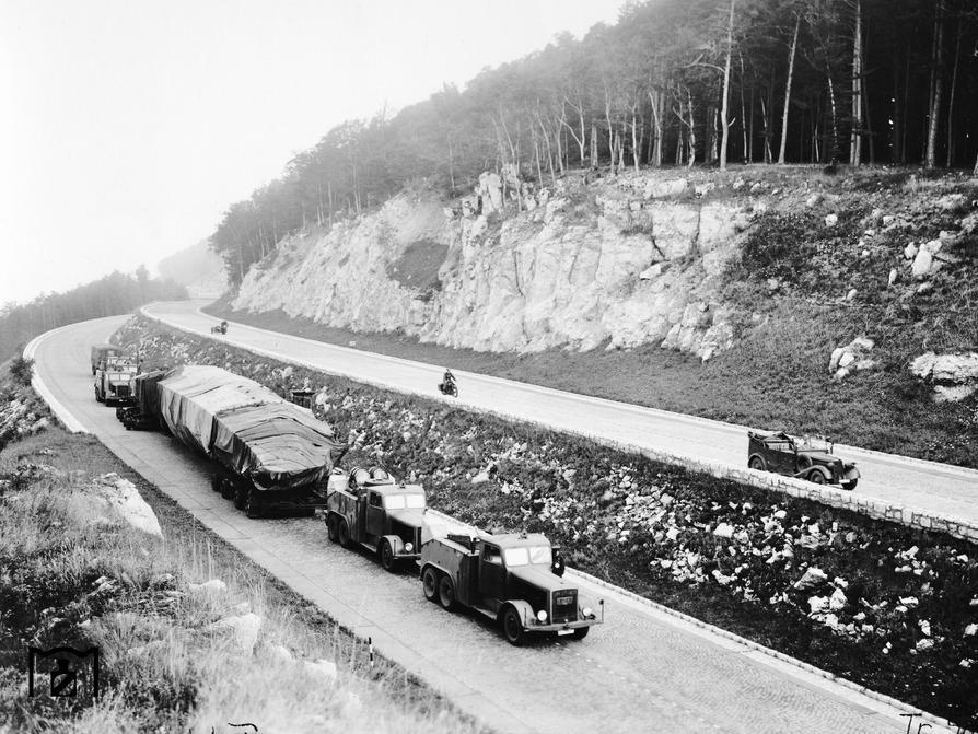 Тяжелый транспорт, движущийся со скоростью улитки (максимум 8 км / ч), часто позировал фотографу-попутчику, как здесь, на горе Киндингер. (29.05.1940) Фото: РВМ