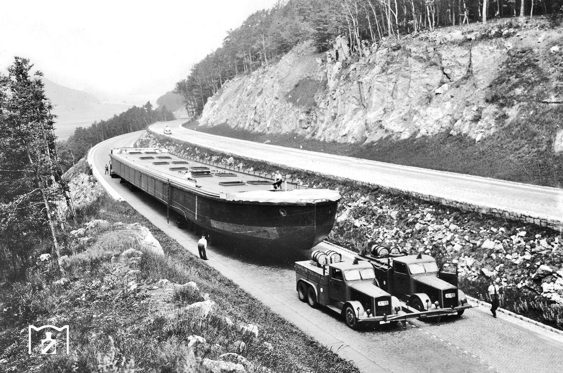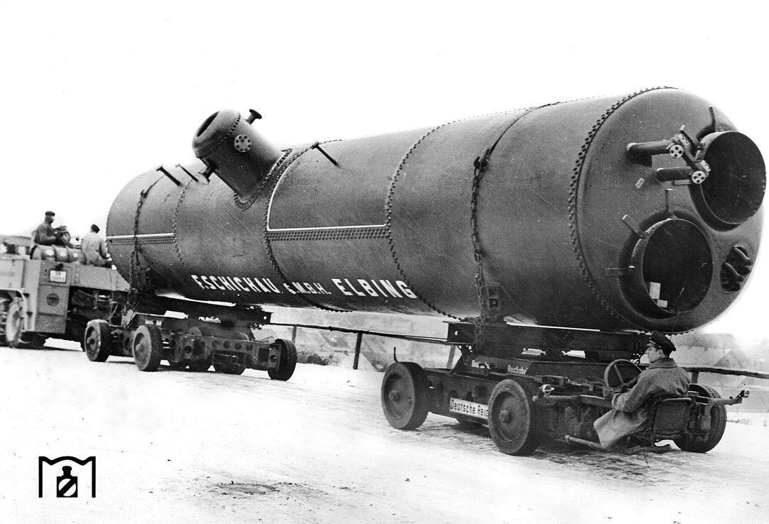 В общей сложности 6 подводных лодок типа II B (U 19, U 24, U 9, U 18, U 20 и U 23) прошли по суше из Дрездена в Ингольштадт в период с мая по октябрь 1942 года. На горе Киндингер фотограф RVM снял одну из сверхсекретных перевозок. (1942) Фото: RVM