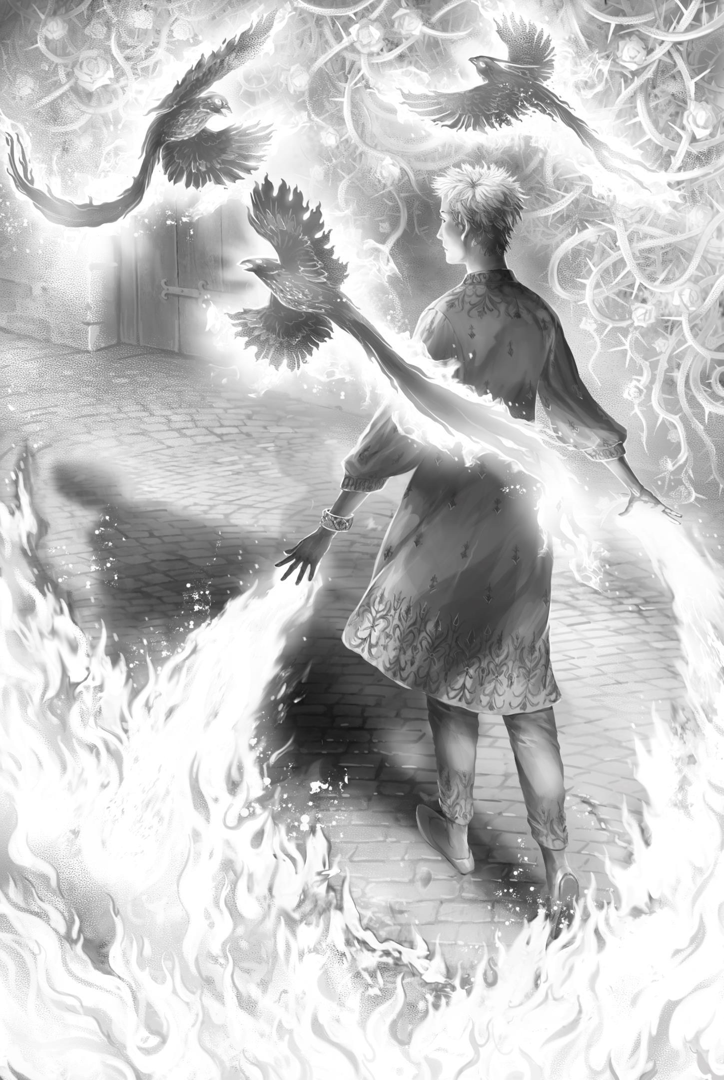А вот на этапе проработки мозг вывернула, пока разобралась, как всю эту огненную феерию развести по тону: огонь светит, лоза светит, день светит, огнедухи светят