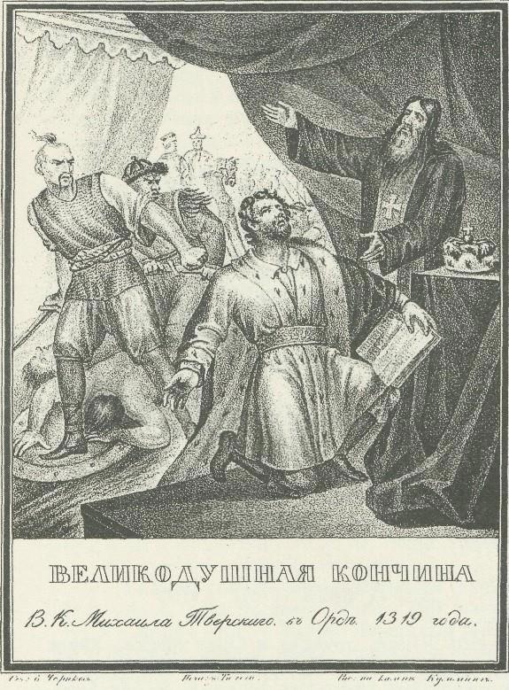 «Разве он не дядя тебе? – потрясенно кричал татарский вельможа – Зачем же его тело так брошено нагое?[Цит. по Иловайский Д.И. История России. Т.2, М.: 1896, С. 18]». Но даже после этой отповеди один из людей Юрия лишь небрежно набросил на труп Михаила свою котыгу (верхнюю одежду) и под этой котыгой тверского князя так и везли на Русь, не позволяя доброхотам даже обрядить его должным образом, и оставляя тело не у церкви, как положено, а в хлеву.