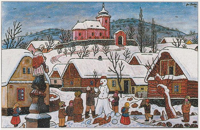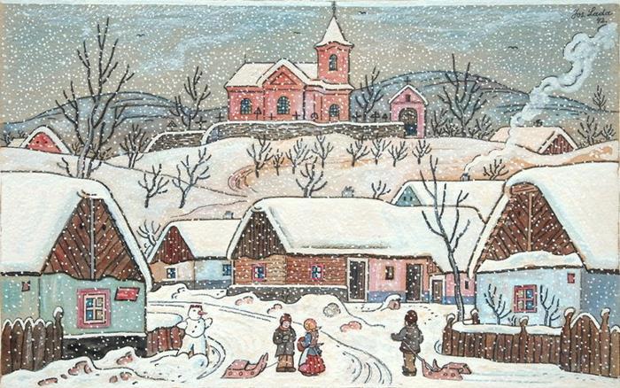 1930-е годы — начало работы над сериями пейзажей чешской деревни (гуашь, акварель, темпера), которая затем продолжалась до самой смерти художника. Выполненные в самые тяжелые времена гитлеровской оккупации, они проникнуты живой и нежной любовью к родному краю, чувством патриотизма, выраженным с высоким художественным совершенством. Они близки к иллюстрациям сказок самого Лады и к народным картинкам, окрашены теплым лиризмом, трогают наивной поэтической прелестью. Особенно хороши и тонки по настроению зимние, «рождественские» пейзажи.