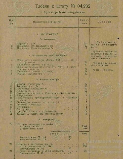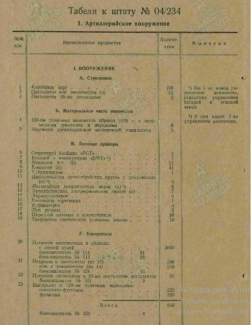 Отдельный миномётный батальон (штат № 04/232);