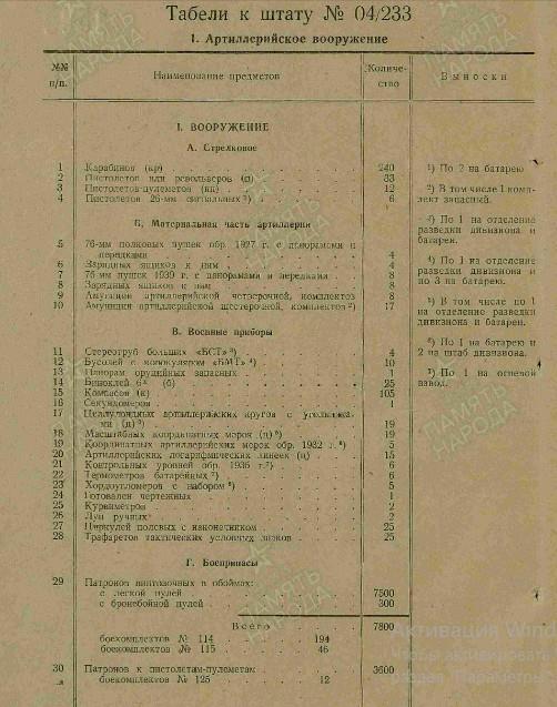 Отдельный артиллерийский дивизион (штат № 04/233);