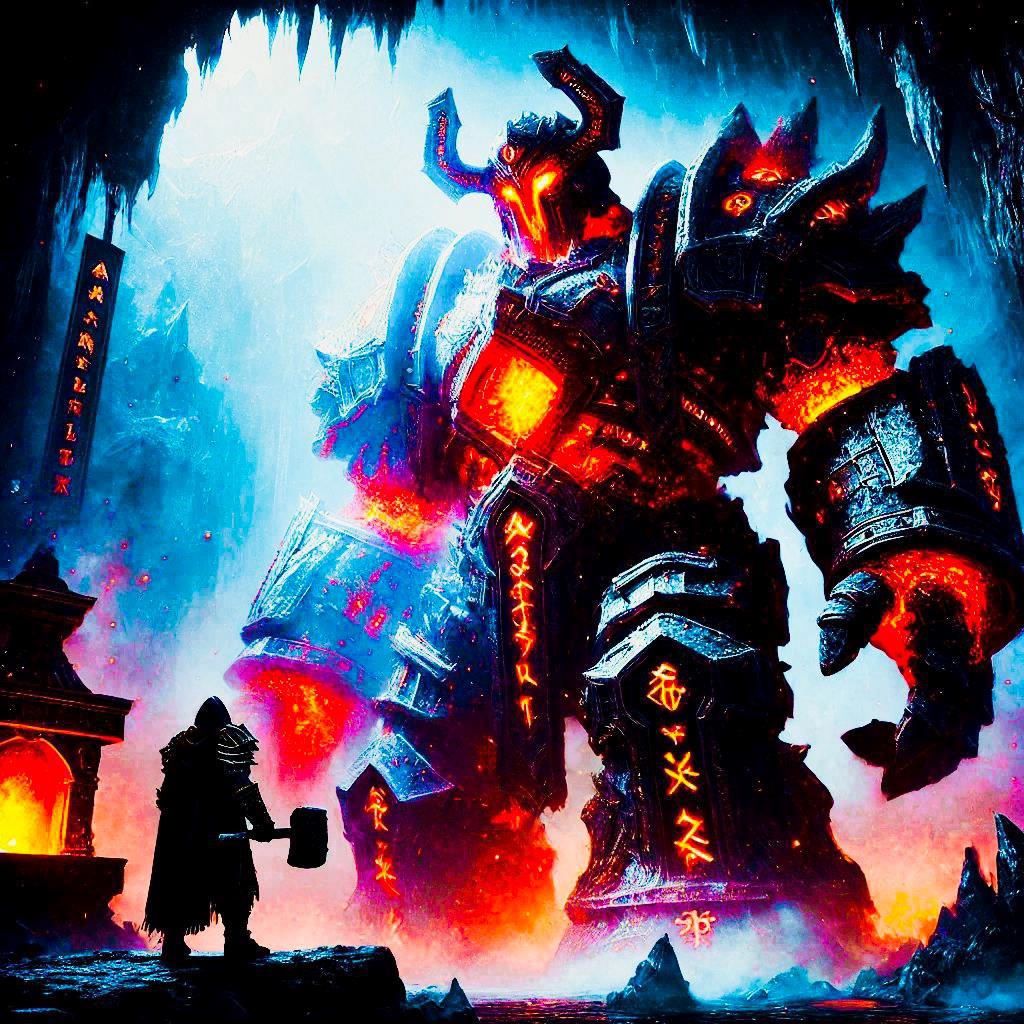 Зулгард Зов Забвения приступил к работе. Каждый удар молота не просто бил по металлу — он разрывал пространство, заставляя его подчиняться воле мастера. Огромные плиты адамантия со скрипом соединялись, формируя тело голема. Руны, написанные кровью древних магов, вспыхивали на его броне, превращая металл в живое оружие.