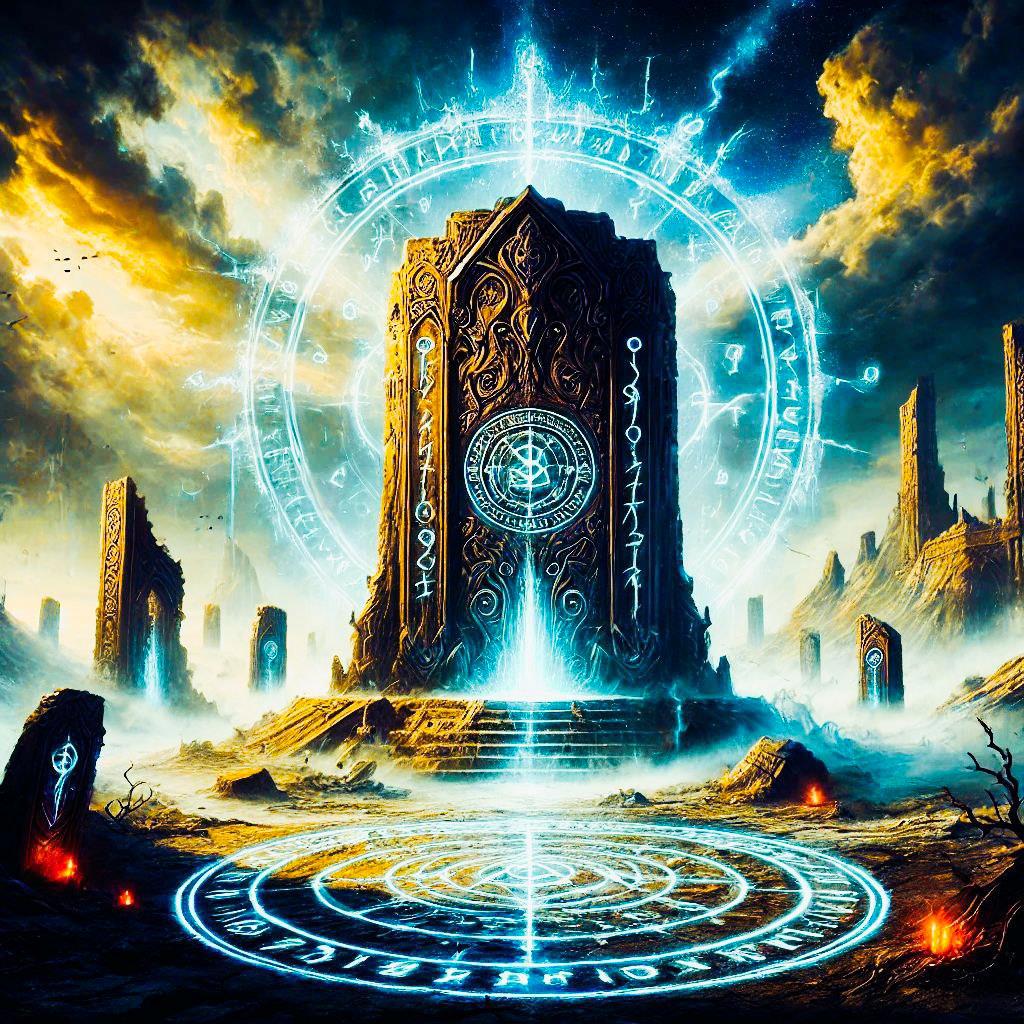*"Здесь покоится Элейон, хранитель света, несгибаемая воля мира. Он бросил вызов самому воплощению тьмы — Гримхольду, дитя ненависти и хаоса, выкованному в недрах зла. В битве, что разорвала небеса и сотрясла горы, Элейон стал не просто магом — он стал легендой.