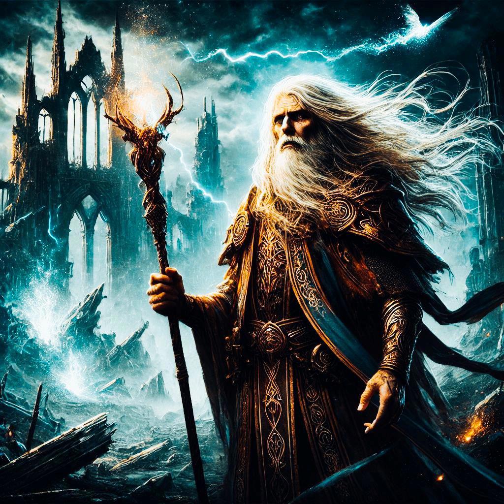 Он не дрогнул перед бездной, когда она взглянула на него глазами, горящими вечным мраком. Он устоял, когда её сила пыталась раздавить всё, что ему было дорого. Его посох стал молнией, разящим клинком света, его слова — громом, от которого содрогалась сама земля. Он вызвал небеса и низверг звёзды, чтобы разбить цепи тьмы.