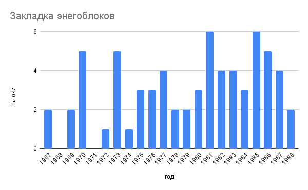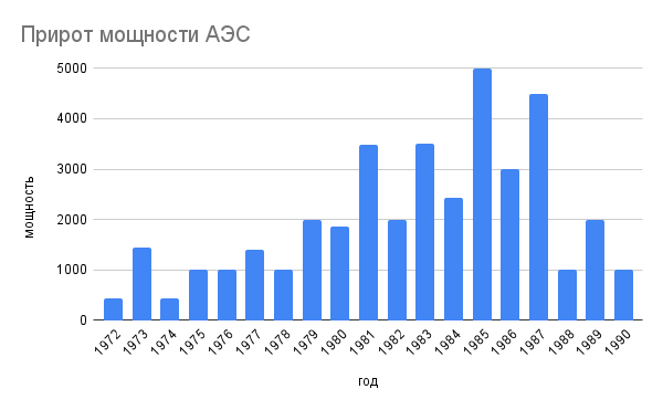 СССР вводил в строй до 5 ГВт и закладывал до 6 энергоблоков в год: