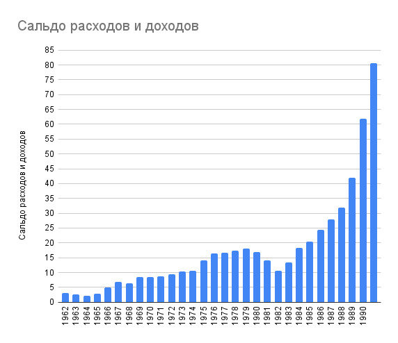 После устранения источника дисбаланса уравновесить спрос и преложение было бы не так уж сложно. Доходы советских граждан с 1968 по 1987 прирастали примерно на постоянную величину 15 млрд. рублей в год, что, кстати соответствует постоянству естественного прироста населения.