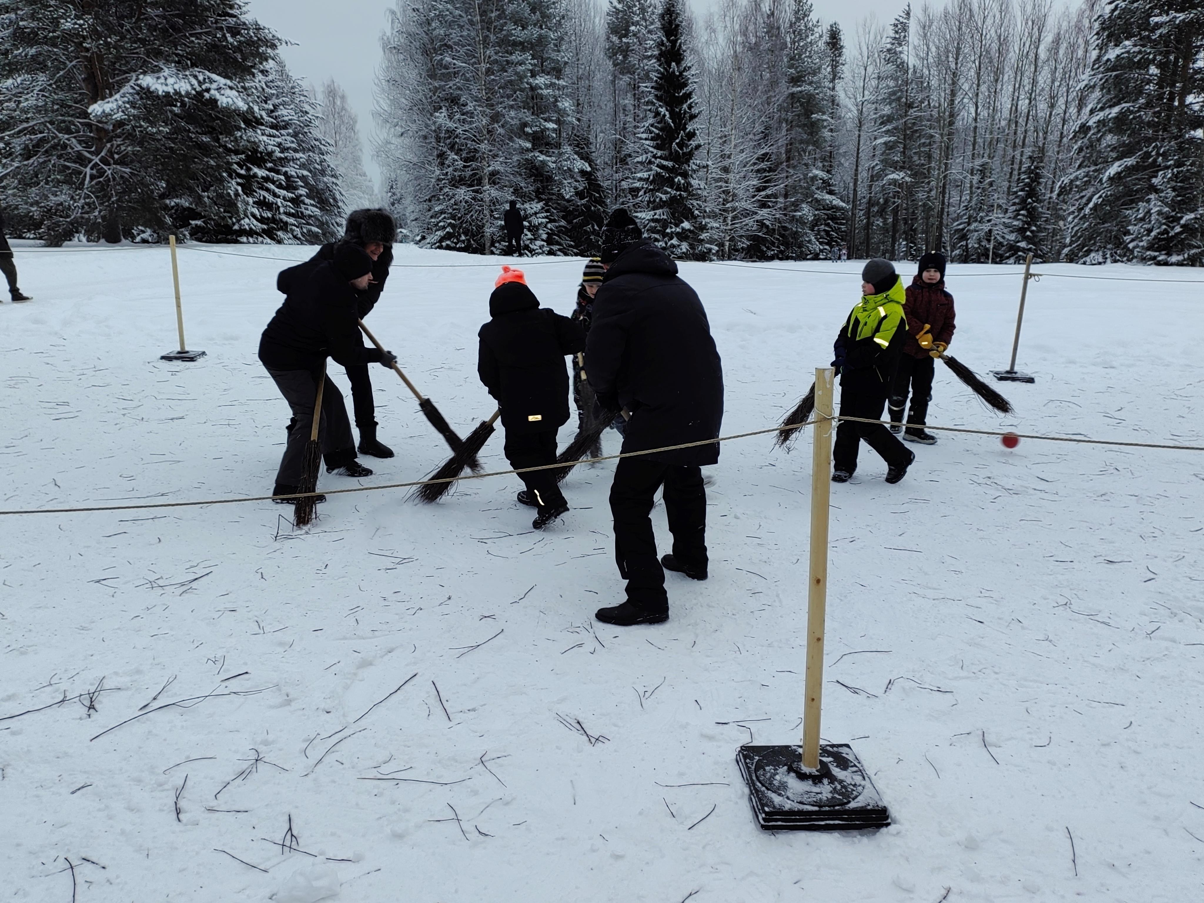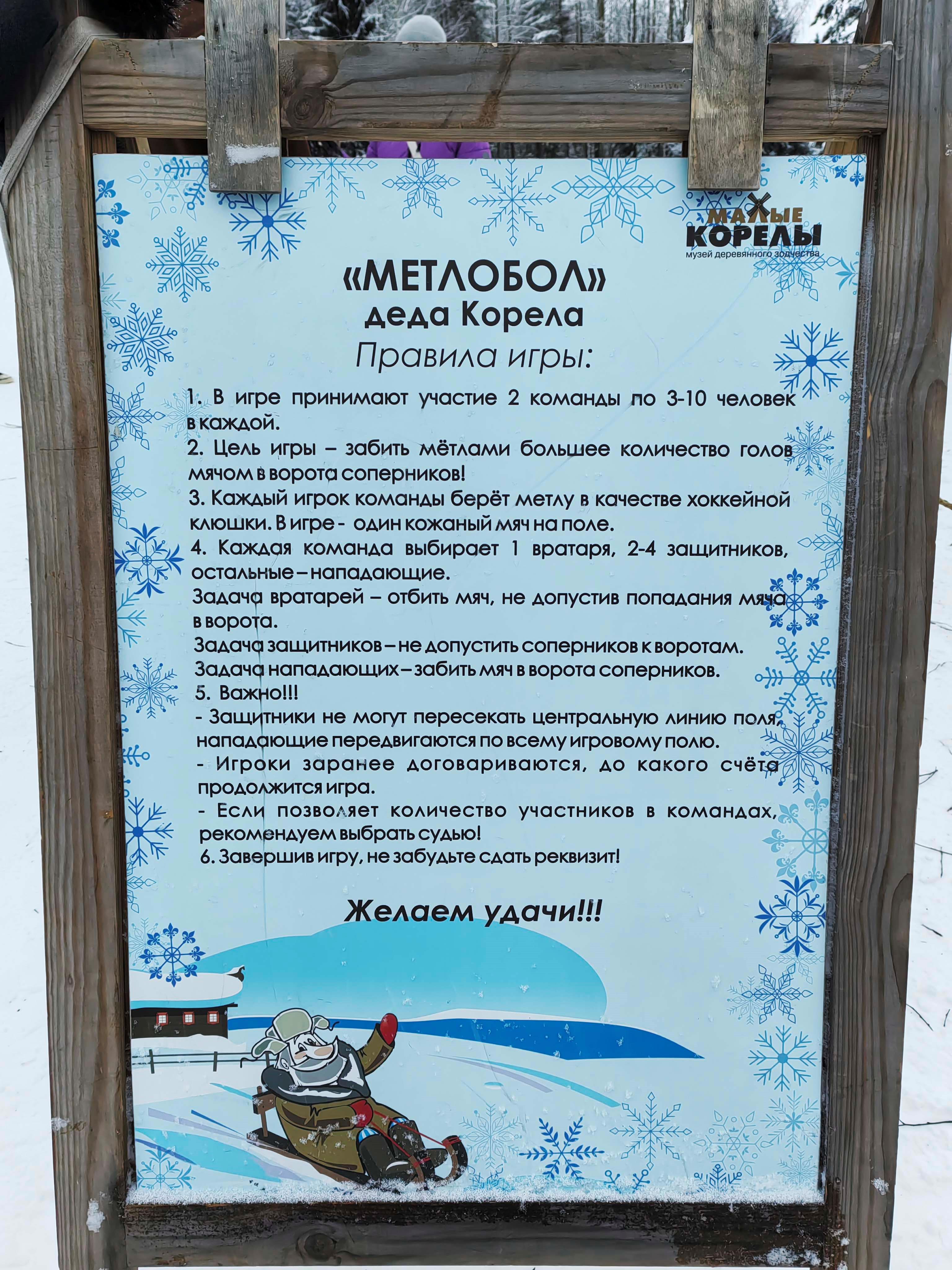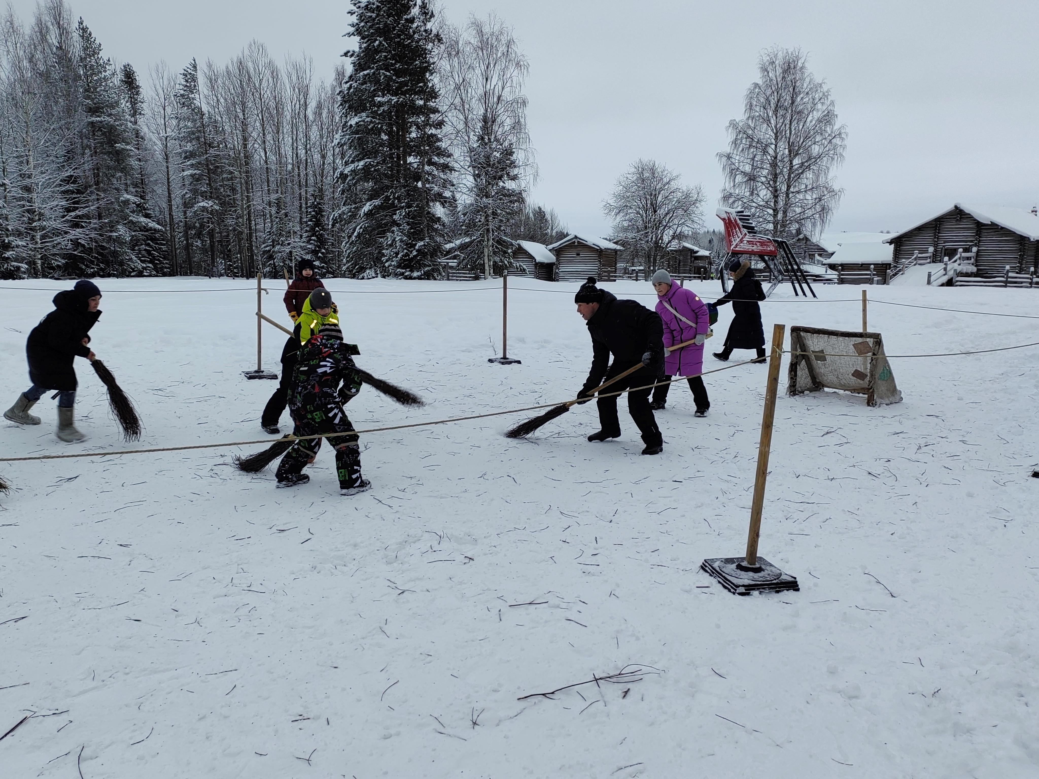 Итак, преодолев бесконечную лестницу я оказался в Двинском секторе заповедника деревянного зодчества «Малые Корелы». Зодчества здесь было хоть отбавляй, но в первую очередь меня привлекло другое: народные забавы. Я впервые в жизни увидел, как в хоккей играют не клюшками, а мётлами. Забавно получается. Умеет народ в Архангельске веселиться и отдыхать. Рождественские гуляния все-таки. И называется у них этот вид спорта «Метлобол».