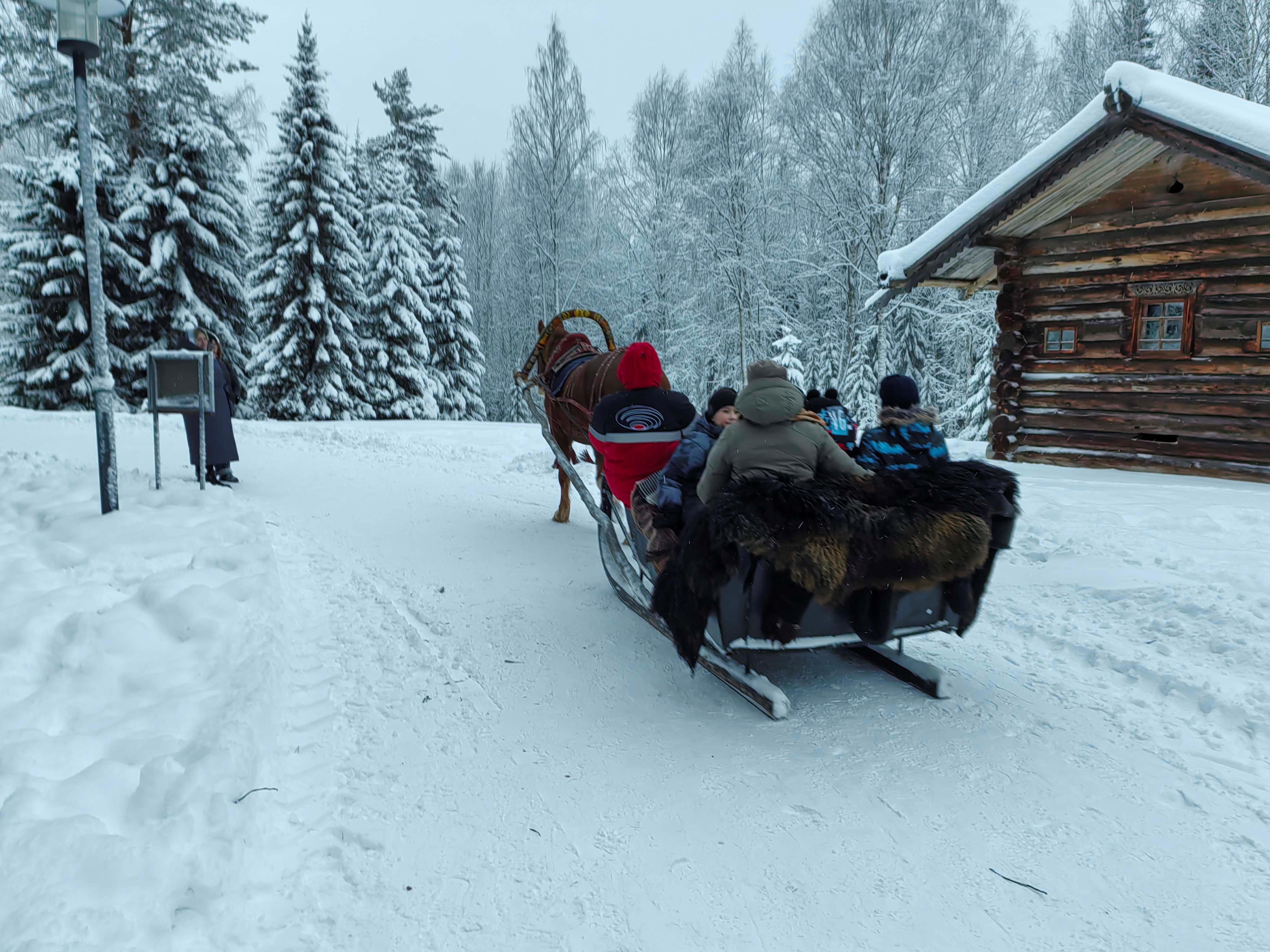 Насмотревшись на зодчество и проводив взглядом сани, запряжённые резвой лошаденкой (смотри видео) я направился к далёкому выходу из музея. Пора было возвращаться в гостеприимный Архангельск, который мне еще только предстояло осмотреть.