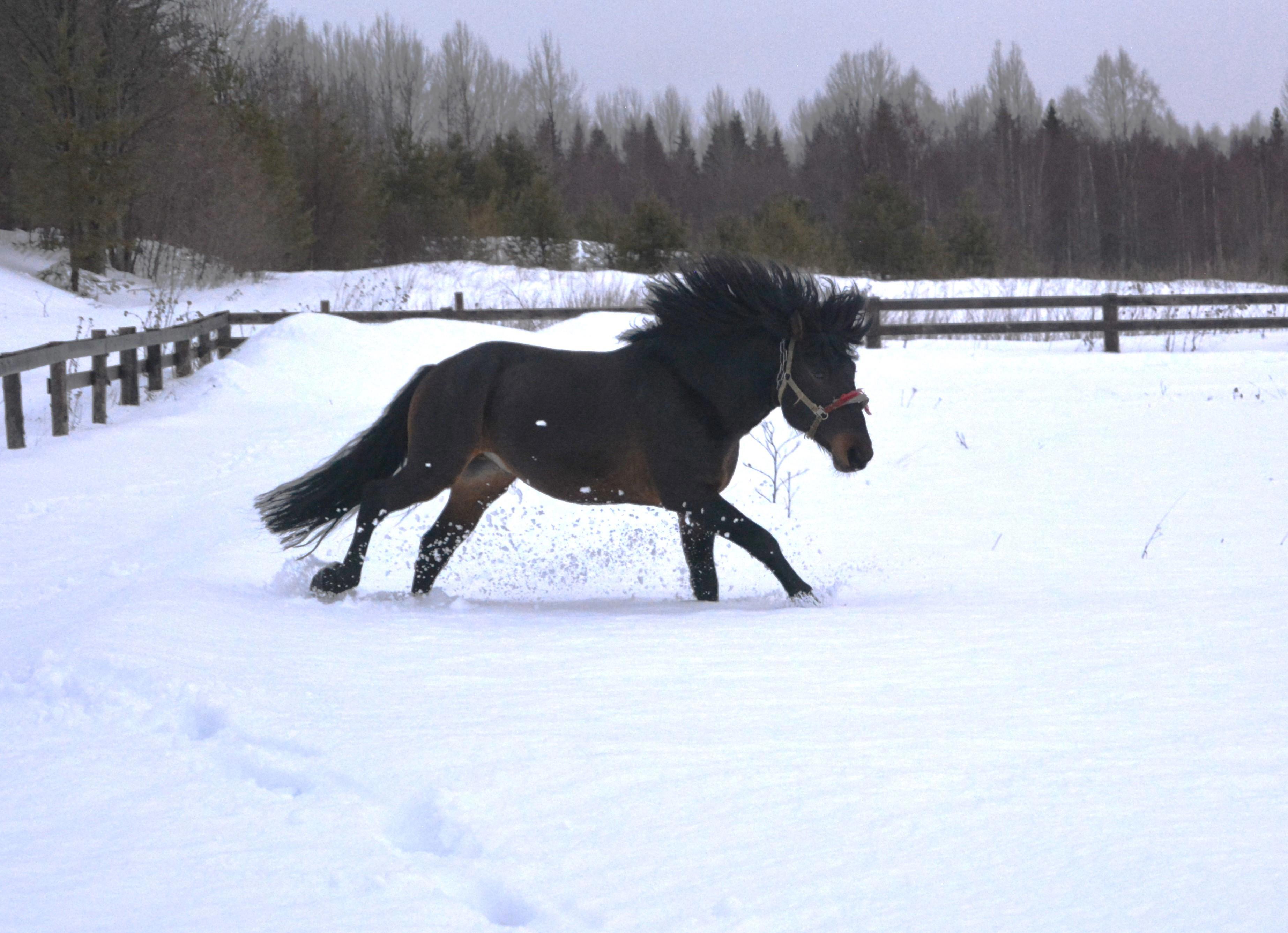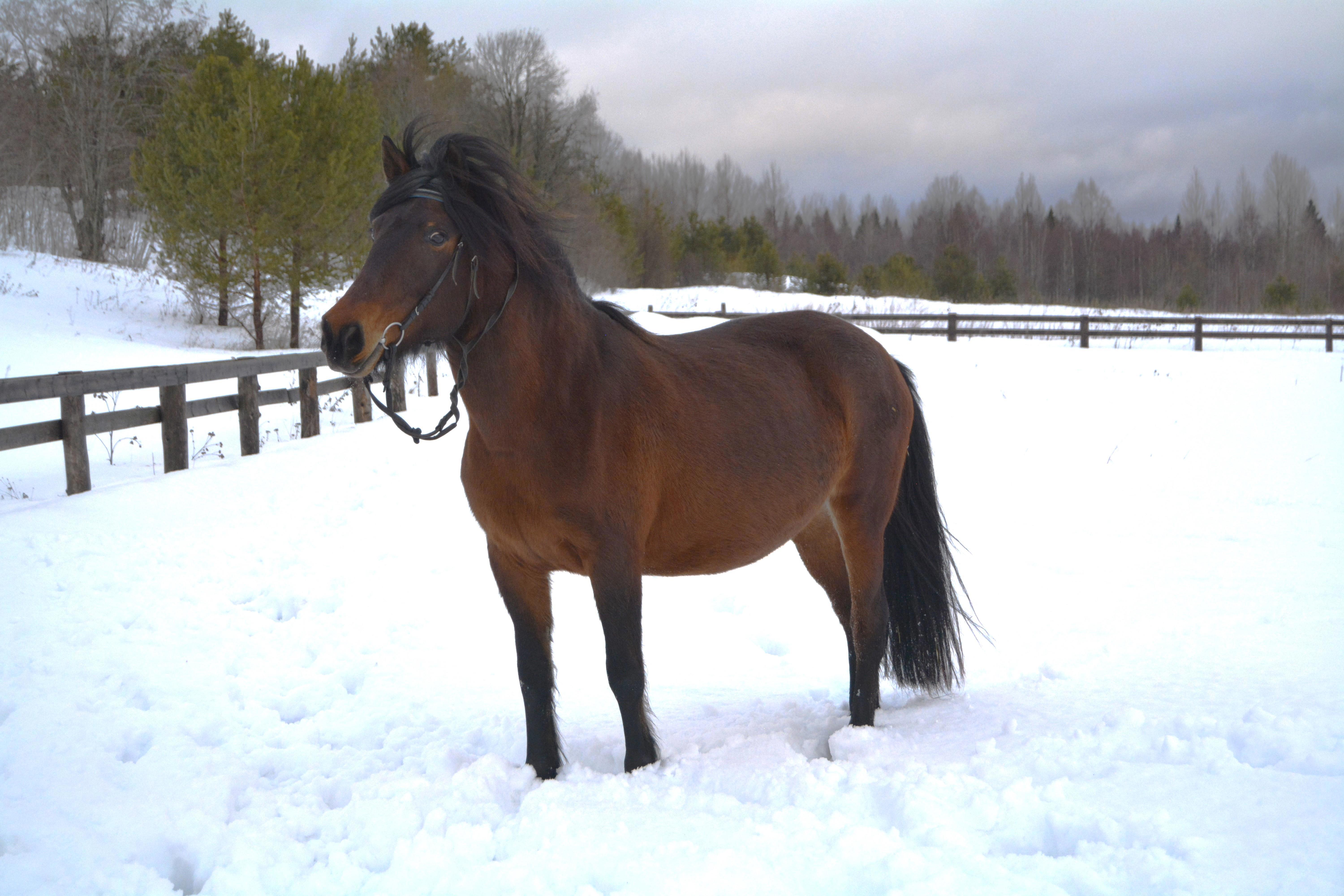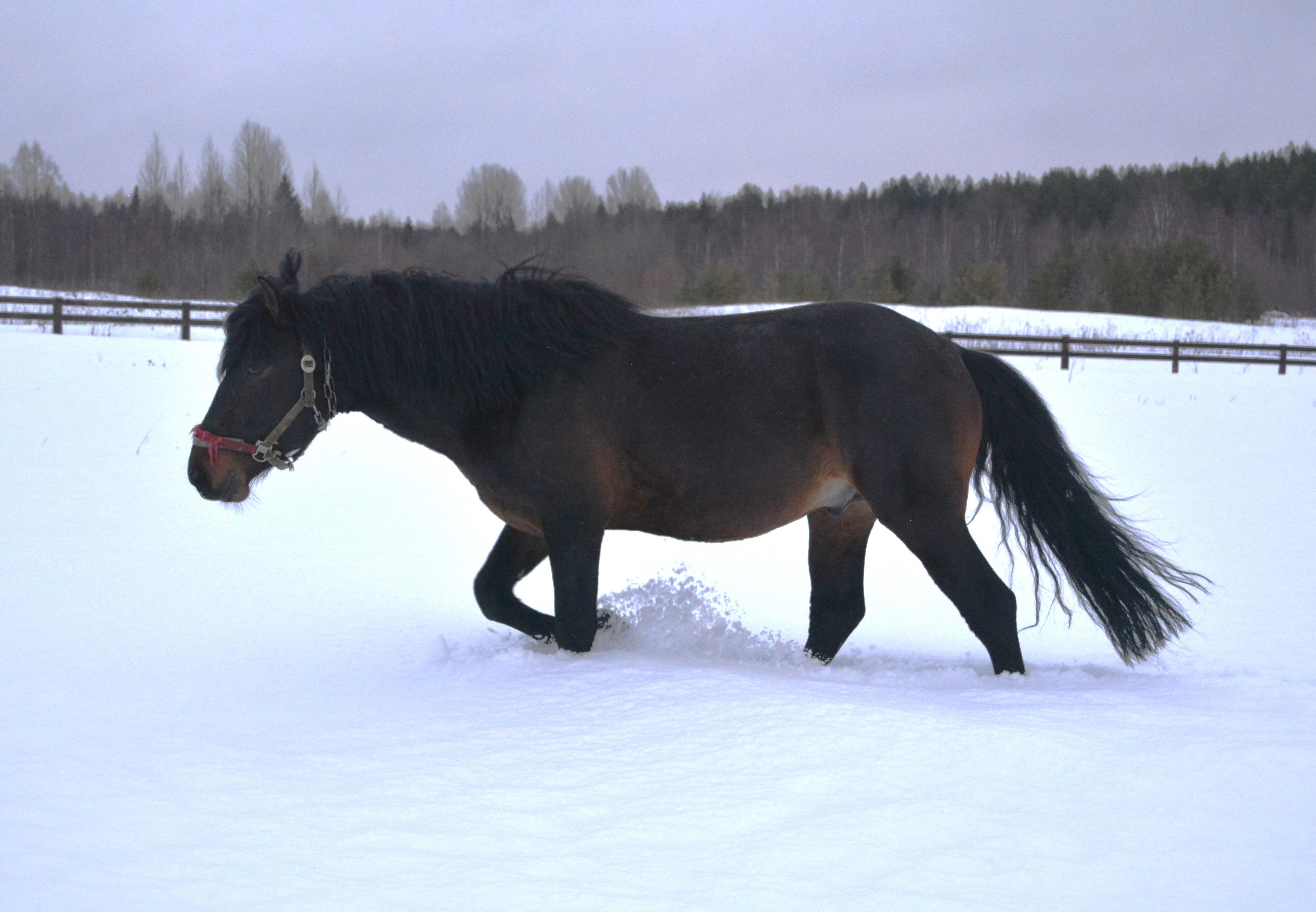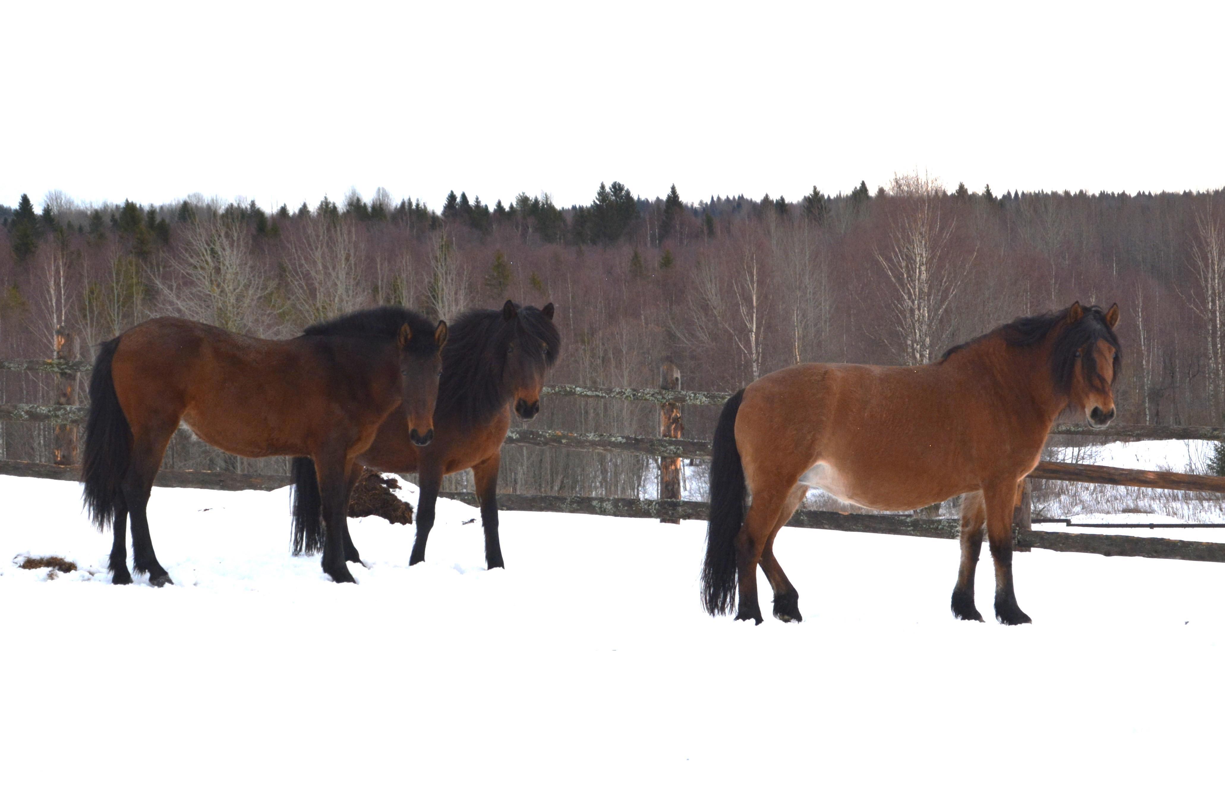 Погода не порадовала совершенно, сначала было просто пасмурно и +3, потом дождь начался - но с помощью сотрудников конефермы я немного смогла поснимать. Всё-таки в моём романе "Имя воина" создаётся племенная конеферма именно по мезенской породе лошадей - и мне хочется показать, как выглядят и двигаются лошади этой породы.