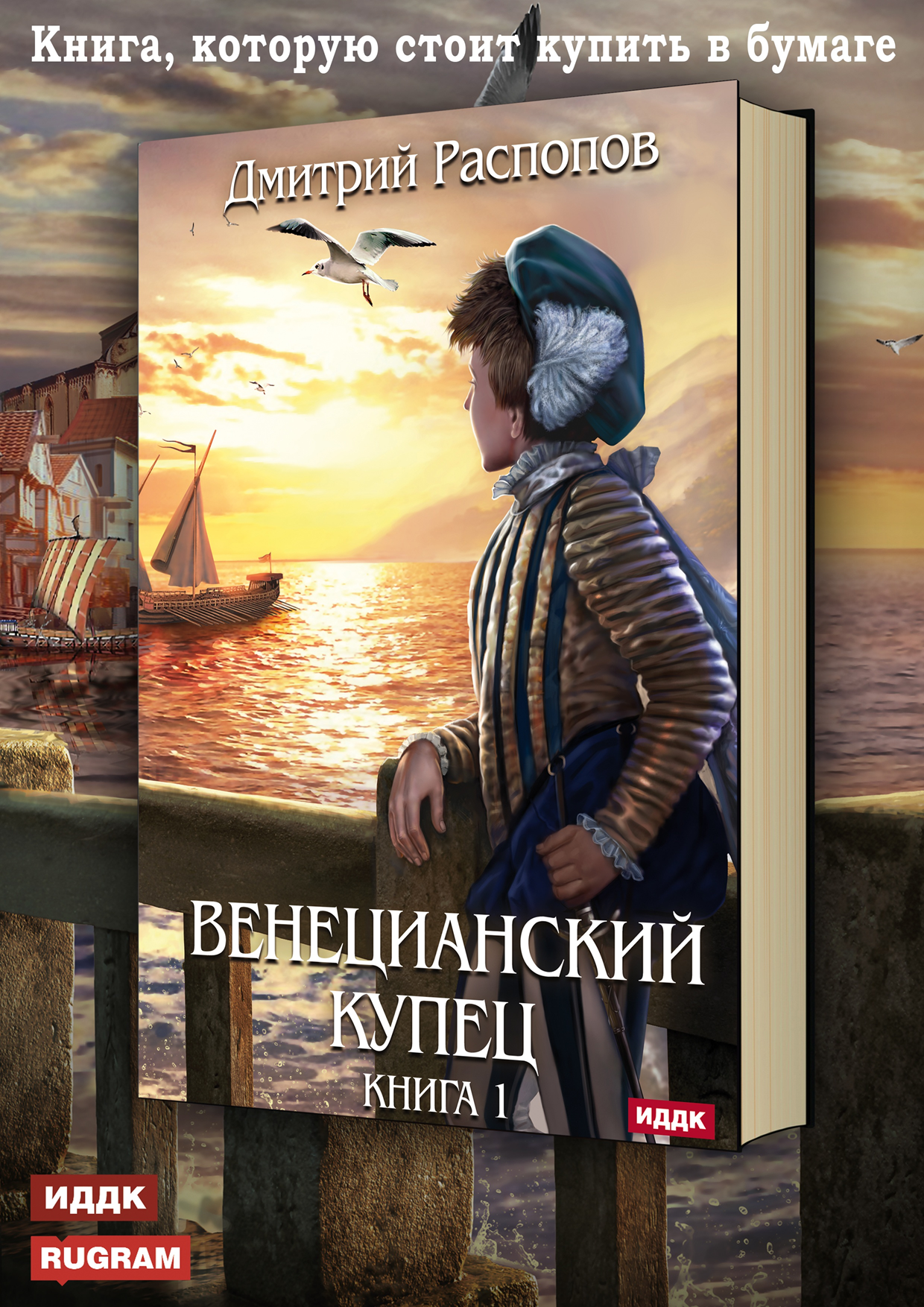 Дальше текст, если будете кому-то пересылать с более подробной информацией об этом:Распопов Дмитрий "Венецианский купец. Книга 1"Бумажную книгу можно купить здесь: