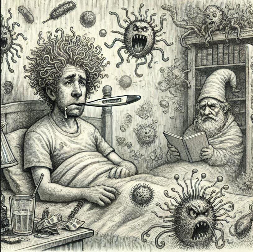 Но с другой стороны — хоть творчеством займусь. Пока штырит от температуры и мерещится, что плесень на потолке пишет автобиографию, кто знает, может, я тоже шедевр сотворю. Главное, чтобы мысли не убежали вместе с соплями, оставив меня один на один с одеялом и обречённым взглядом в потолок, где эта зараза уже спин-офф о себе пишет (Саня, будь безропотен!).