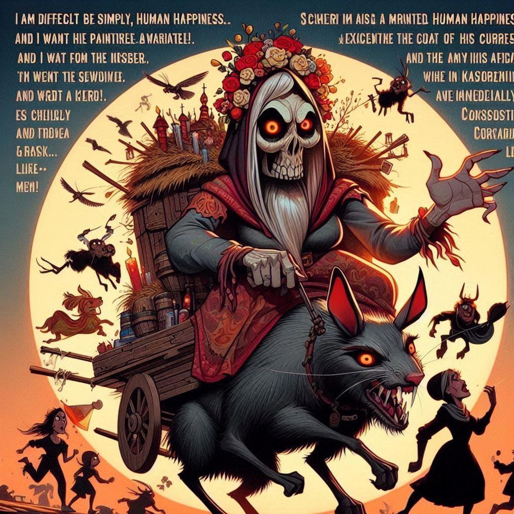 А вот юная (sic!) Баба Яга из книги "Нога судьбы" едет искать мужа. Что-то мне за мужа тревожно... Кстати, есть мнение, что если подпись прочитать в полночь на перекрестке, суженый точно явится. Не факт, что вы обрадуетесь, правда.