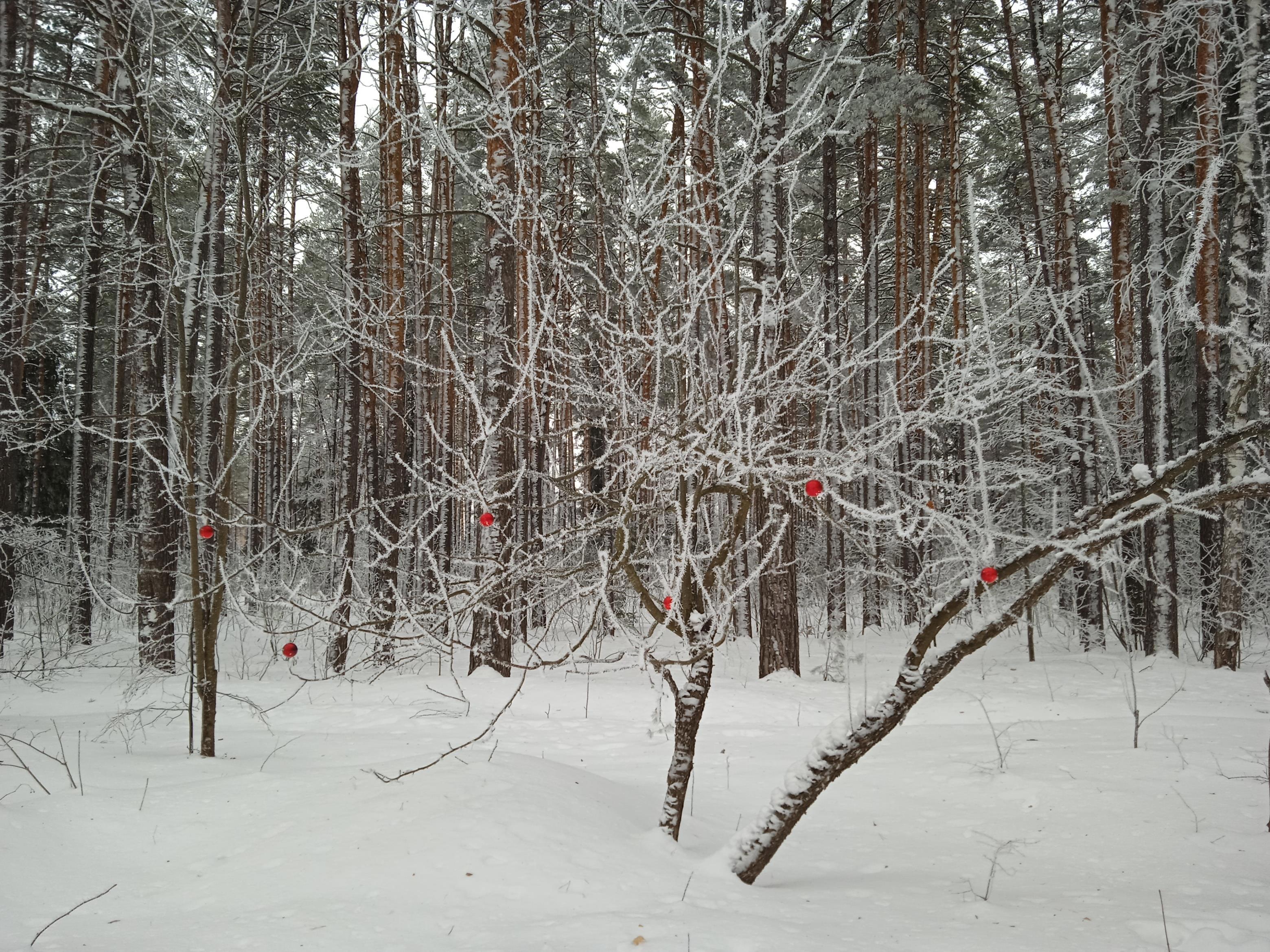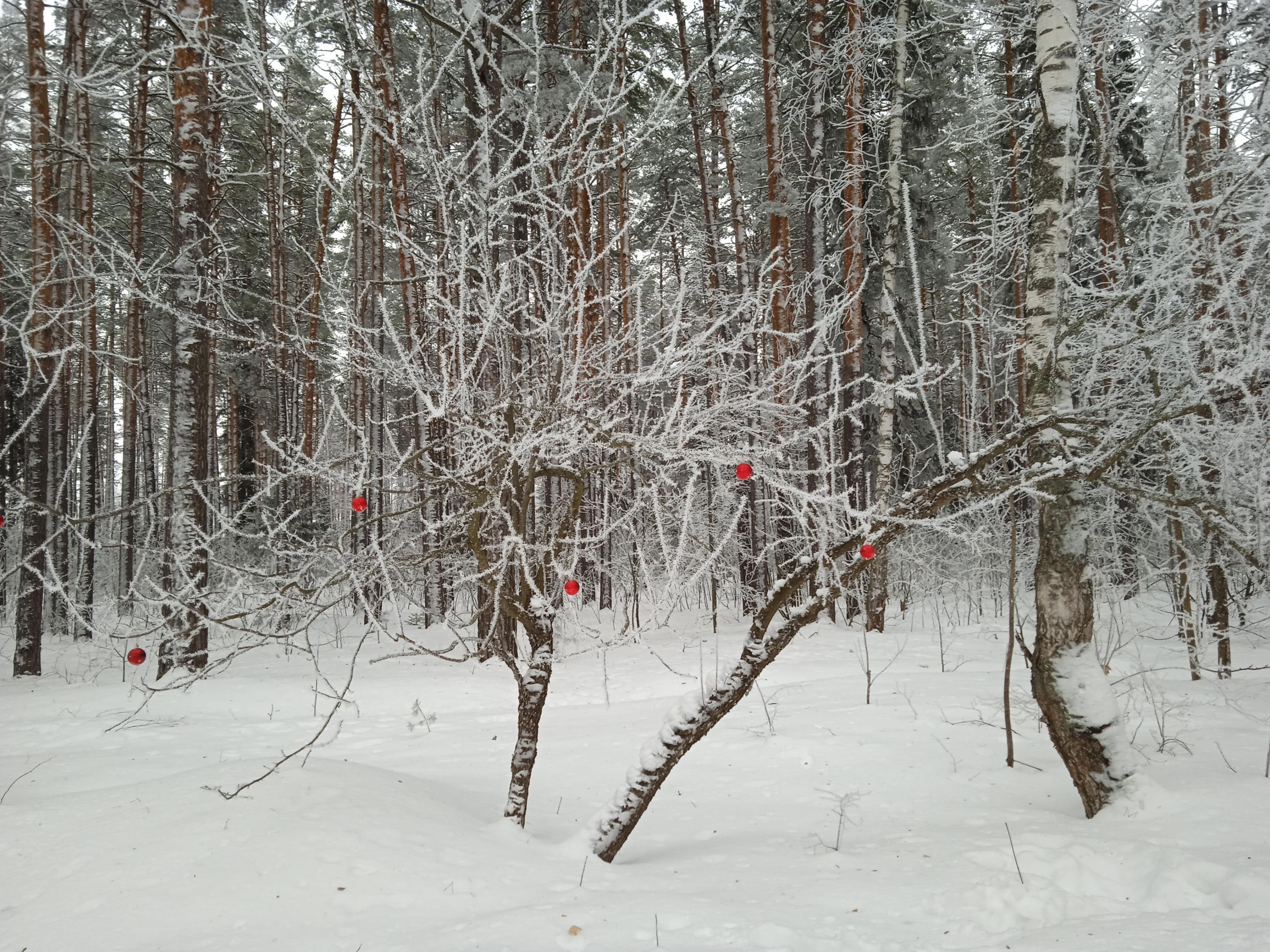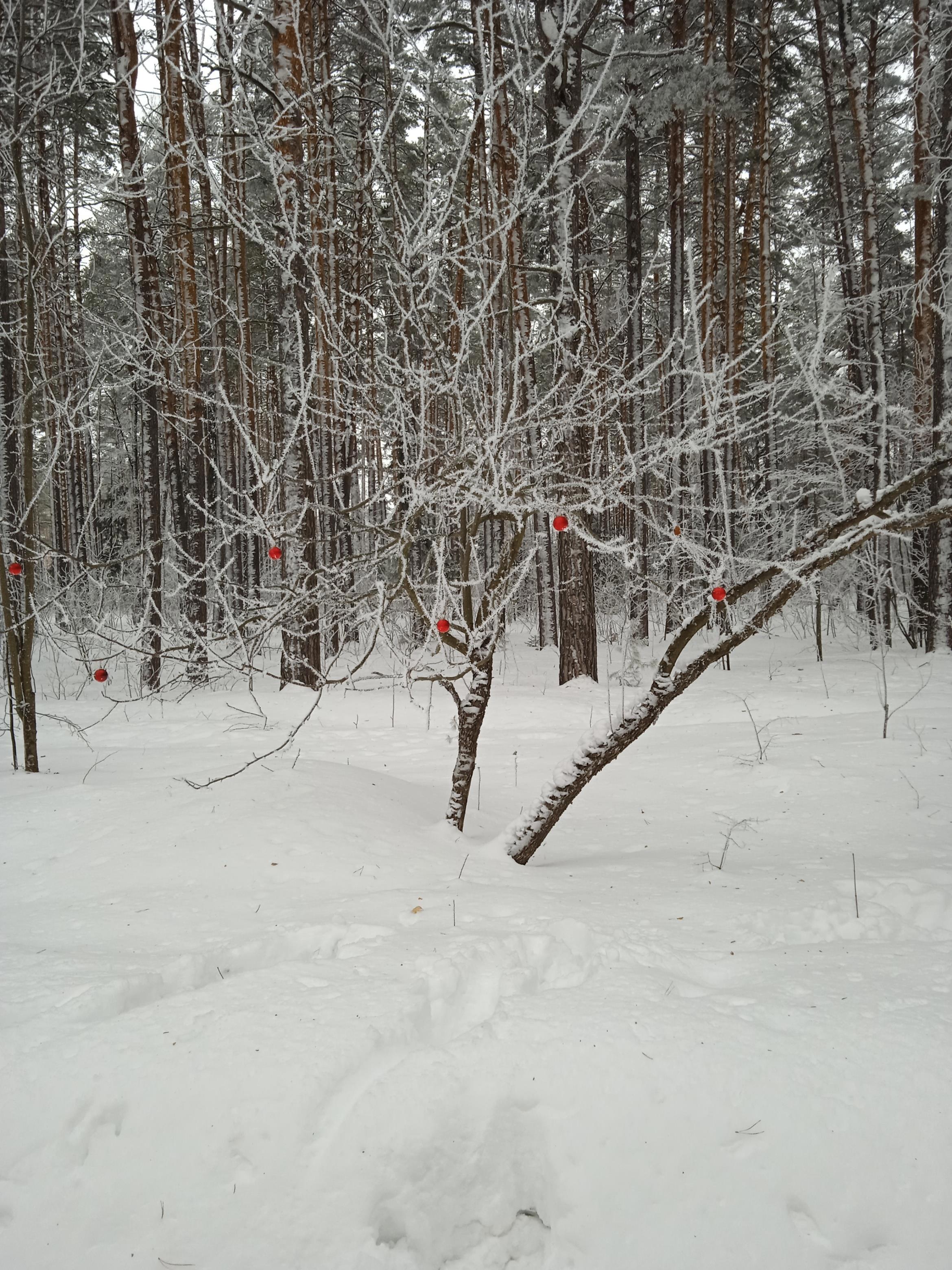 Это не яблоки. Это игрушки: кто-то праздновал в лесу...))