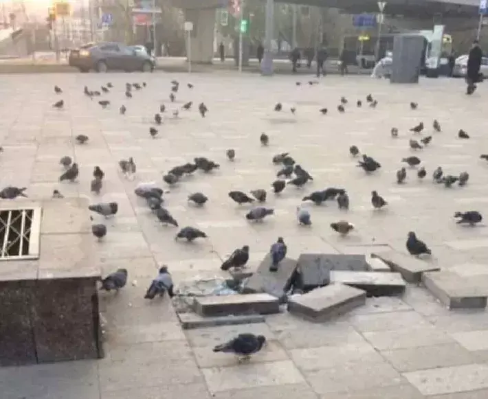 в поисках корма голуби разрушают город