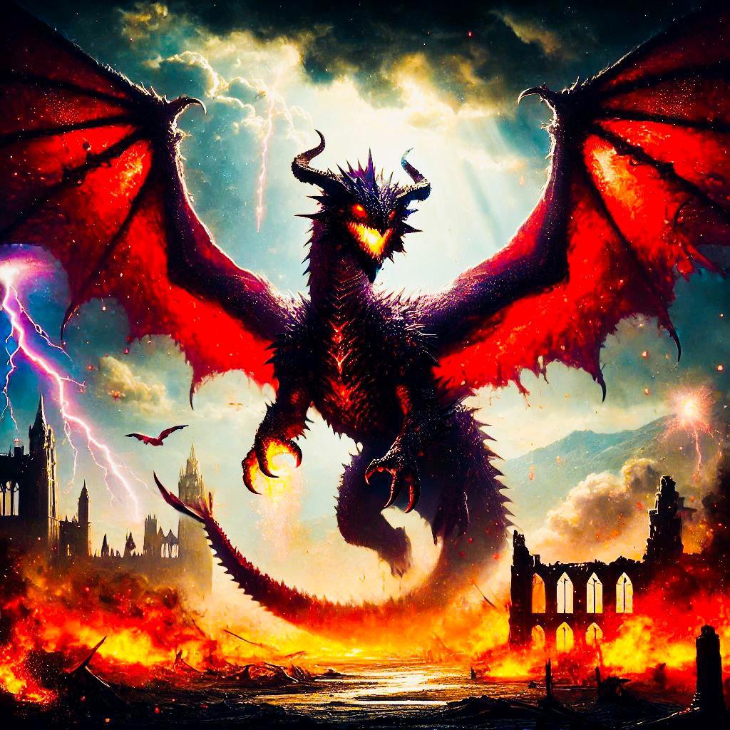 В раздирающем туманном мраке, где свет едва пробивался сквозь завесу ночи, две могущественные силы вступили в бой. На одной стороне был Красный Император — дракон чей огненный взор сжигал целые города. Его чешуя, яркая и сверкающая, напоминала раскалённую лаву, а когти, как лезвия, могли разорвать землю. Этот монстр был безжалостен, властен, высокомерен, его сердце было поглощено лишь ненавистью ко всем слабым и беспомощным существам. Он взирал на мир с презрением, его ярость казалась нескончаемой, а каждое его слово было проклятием.
