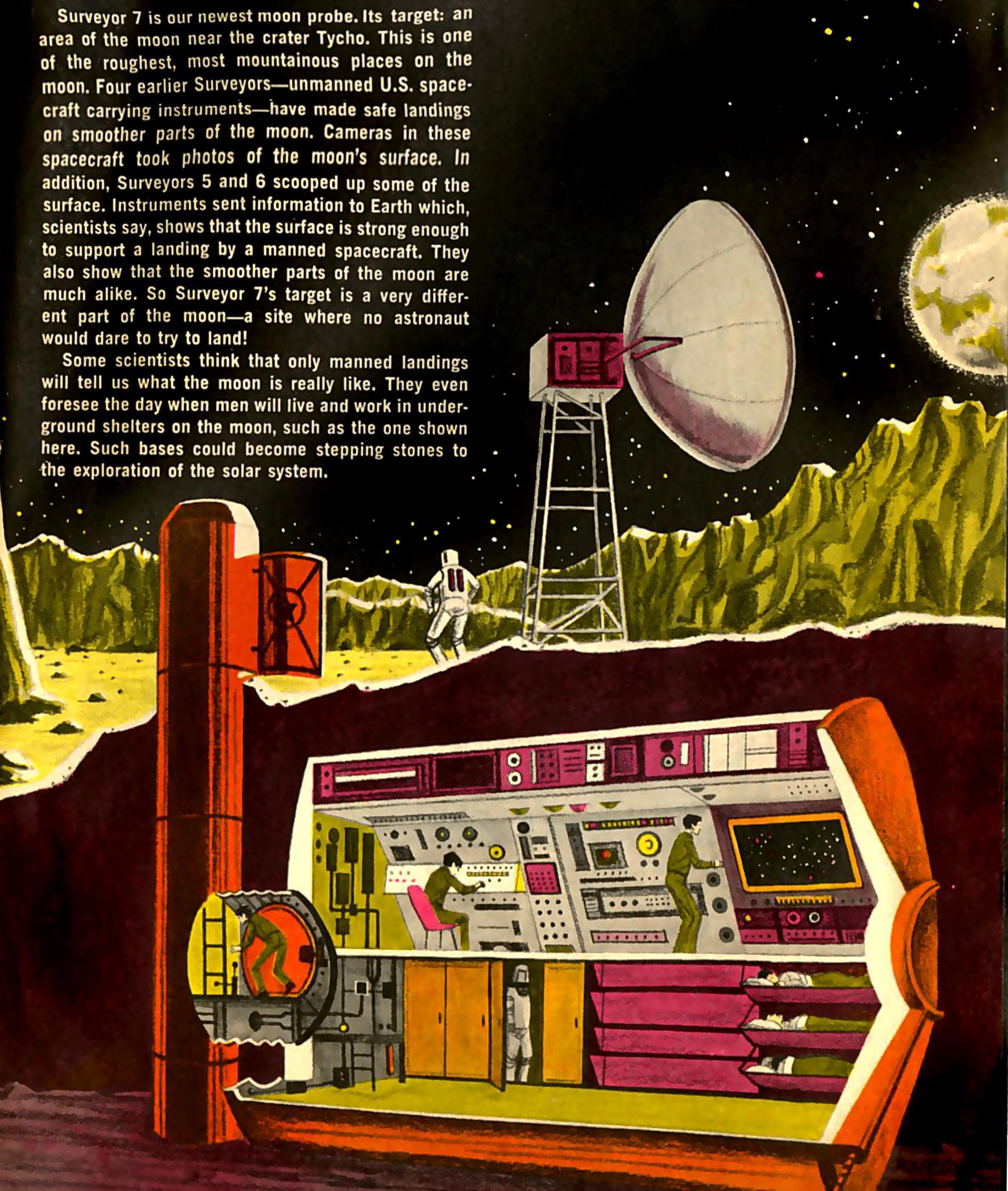 Автор: Алекс РусскихИзначально лунные программы и СССР и США предусматривали развертывание станции на поверхности Луны. Но этого так и не случилось, хотя планы остались, даже расширились - теперь о лунной станции говорят в Китае, а время от времени и в других странах. Публикую небольшую подборку видов гипотетических станций из старых журналов.