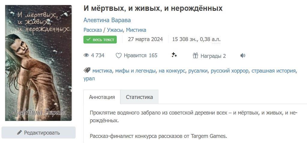 Поддержать лайком аудиоверсию истории в авторской начитке (ей нужнее!) — ссылка