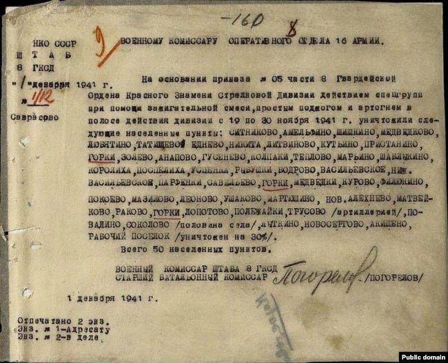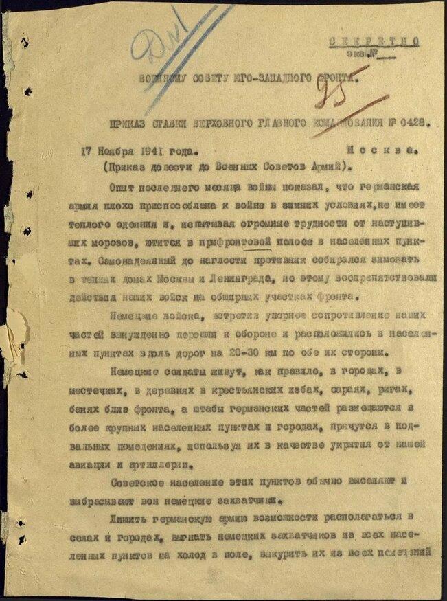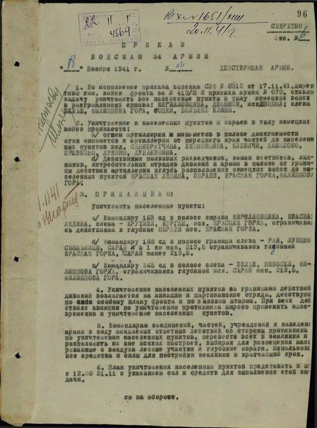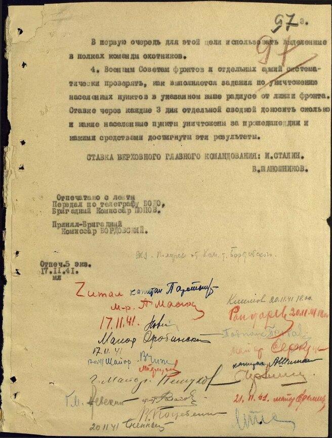 Сам текст приказа Сталина и Шапошникова по уничтожению сёл и деревень приведён выше,качество фотокопии так себе как вы видите,но текст можно прочитать и в интернете.