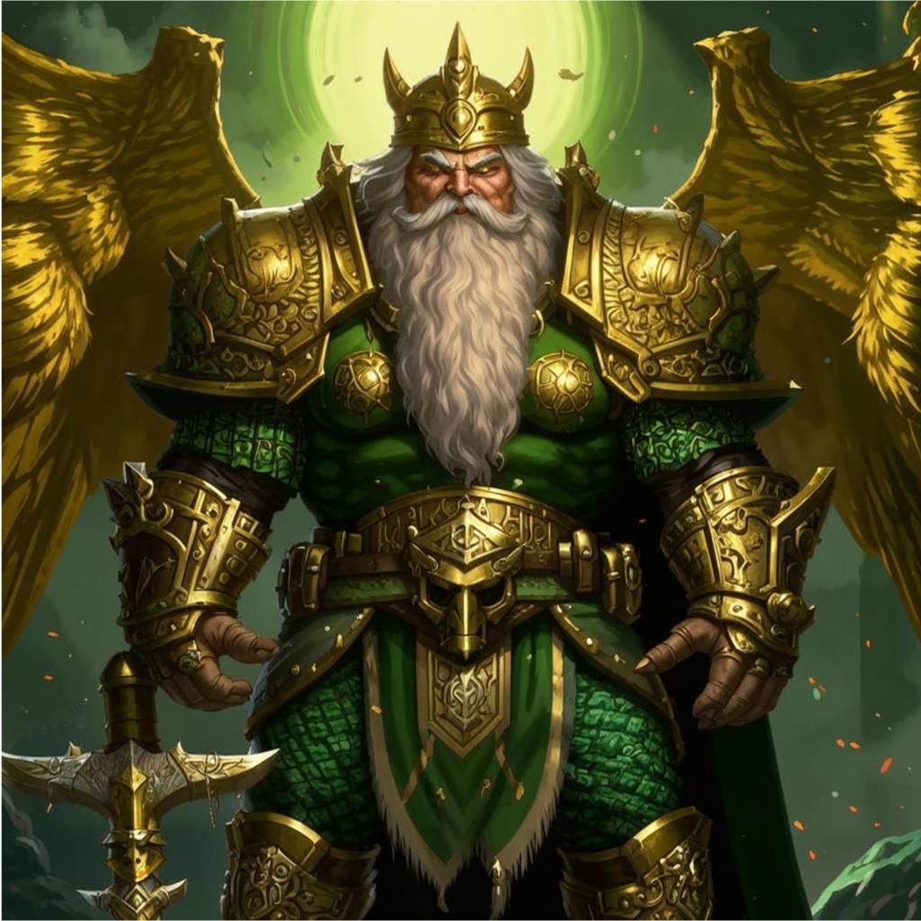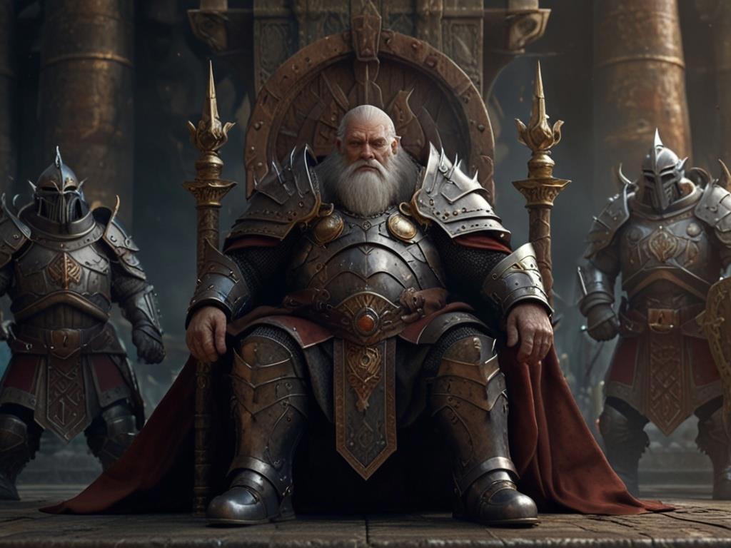 Выше всех стоит король дворфов. Он не просто великий воин, но и наделенный вековой мудростью правитель, что провел свой народ сквозь множество испытаний, сумев переломить даже предначертанное самими небесами. Смело шел в самое око бури, только чтобы выйти из него ещё более могучим.