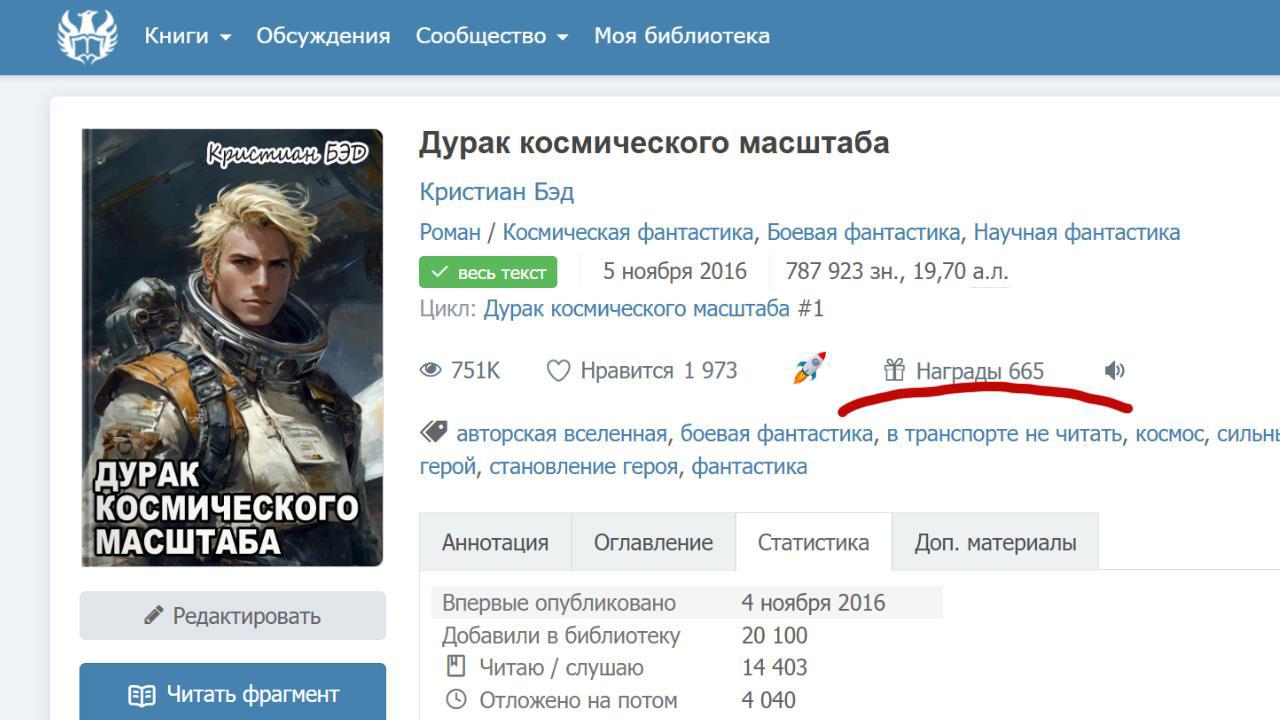 Автор: Кристиан БэдЯ вот сижу и дрожу. Казалось бы — 666 наградок всяко больше, чем 665...
