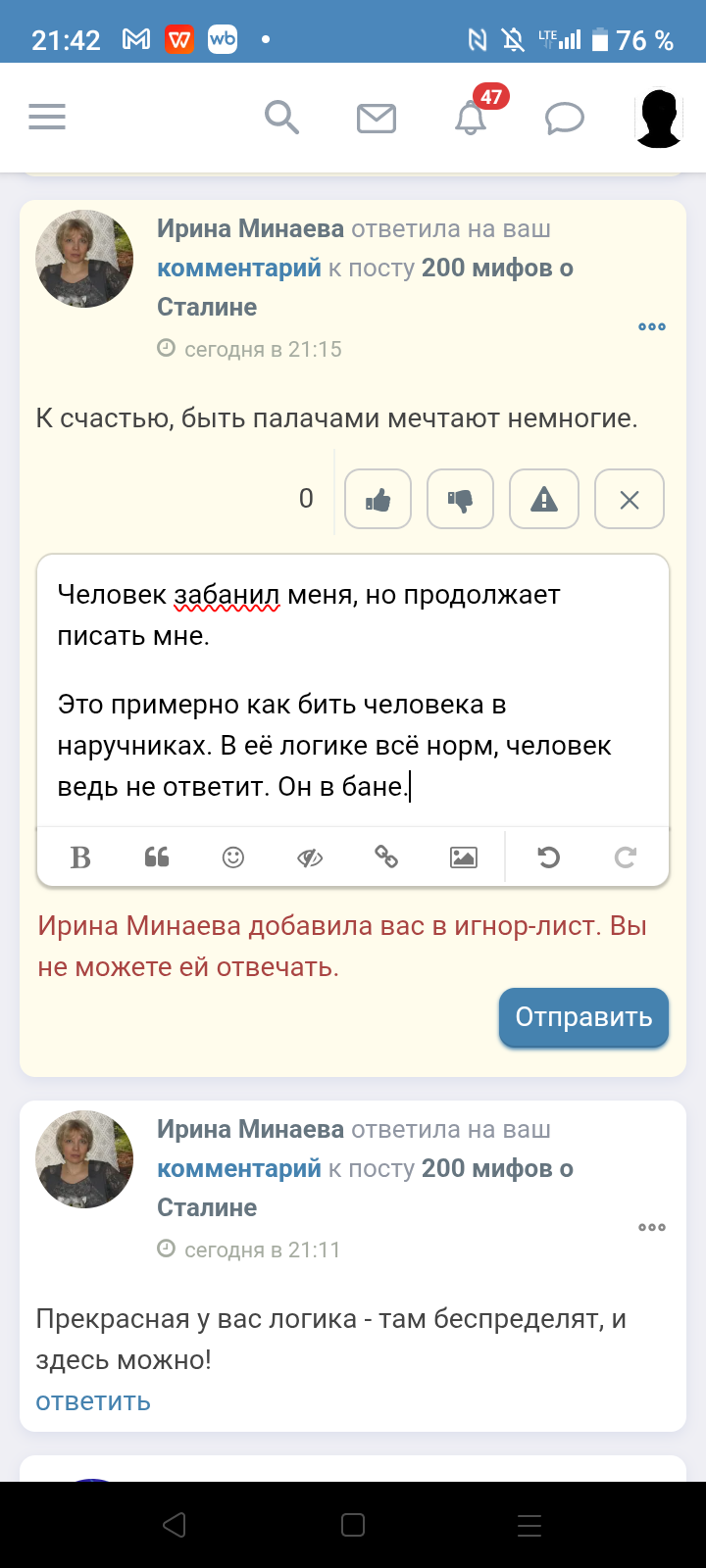 Это примерно как бить человека в наручниках. В её логике всё норм, человек ведь не ответит. Он в бане.