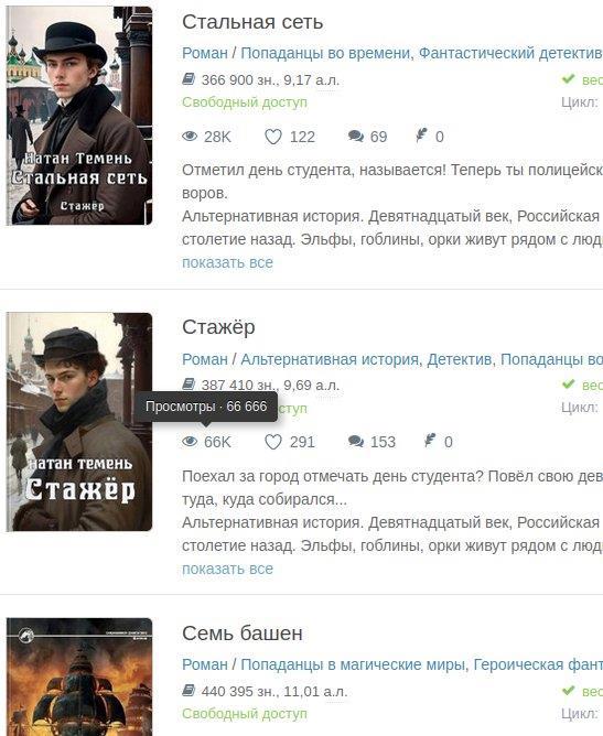 Забавные бывают сочетания цифр. Бросишь эдак взгляд на свои показатели, а там вон чего. У "Стажёра" просмотры достигли вот такого числа: 66 666. Не каждый день такое увидишь! Пришлось срочно зафиксировать для прикола, а то ведь пропадёт цифирка...)