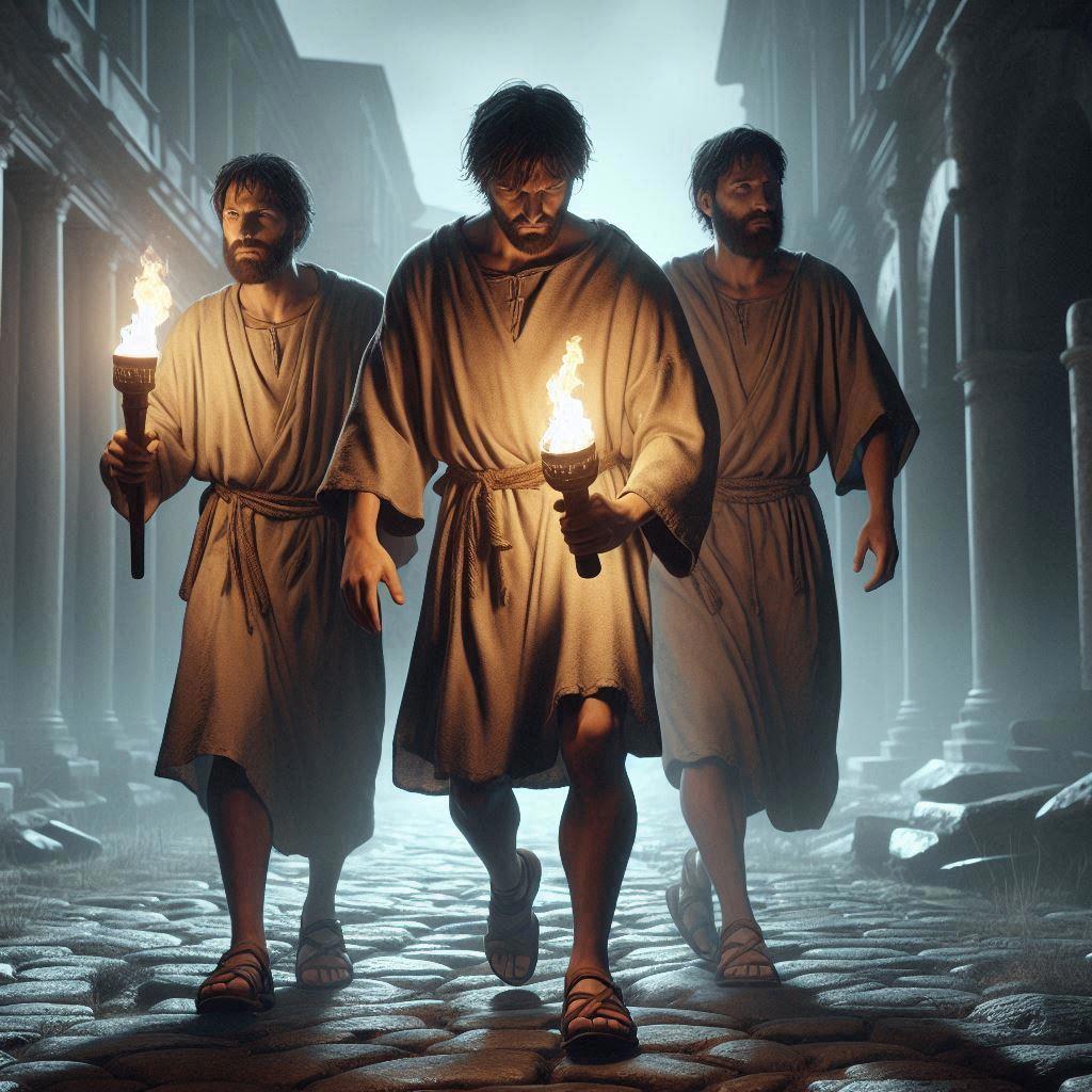 Хлюдвик и два других раба тихо пришли к дому бен Ата Кина. Один раб бросил банку с маслом в темное окно первого этажа. Другой сопроводил его горящим факелом. Они быстро повернули за угол и повторили процедуру. Затем они исчезли в темноте.