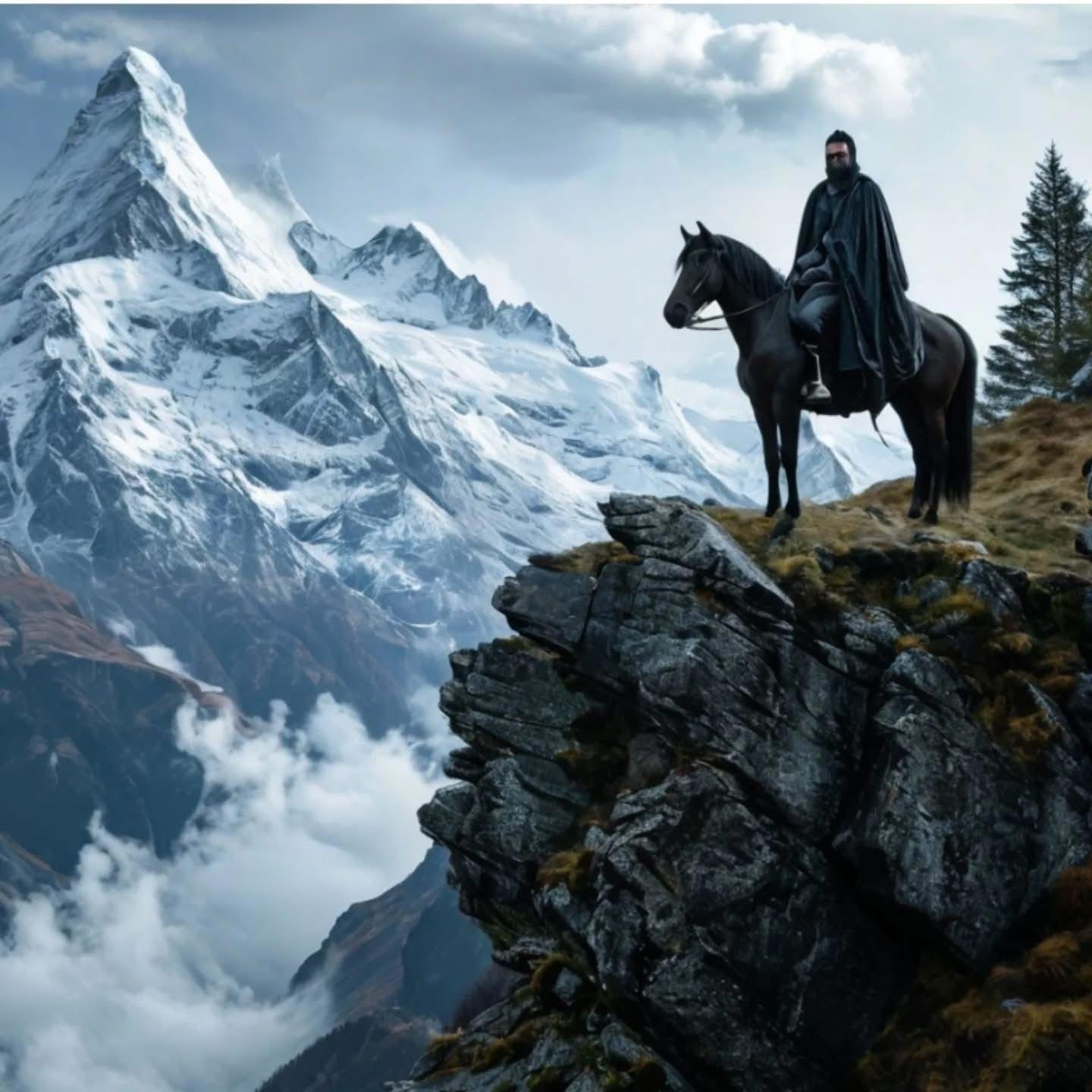 ..."Очень давно, когда народ не забыл еще веры своих отцов и поклонялся Распятому, в соседнем Труссовском ущелье жил знаменитый разбойник Лоло, проклятый Богом за убийство двух своих братьев. Однажды Лоло, призвав покровительство «Черного всадника», с двумя такими же злодеями, как сам, спустился к ледникам Мна-Дона, чтобы достать добычу — и добыча предстала перед ним в образе прекрасной осетинской девушки Хоры. Смело и беспечно пробиралась она по опасной тропе к летним загонам, чтобы напоить овец, принадлежавших ее отцу. Тихо было в ущелье. Тучи ползли по горам, и белое облако клубилось над снеговою вершиною Мна. Лоло тревожно огляделся кругом. На черном шиферном утесе, на вороном коне, в темном одеянии, точно окутанный сумраком ночи, стоял «Черный всадник» и распростертою рукою указывал путь дерзкому разбойнику. Лоло схватил несчастную девушку. Он уже спустился с нею в глубокую пропасть, уже ступил на рыхлые снеговые арки — последнее опасное препятствие на его пути, как вдруг тучи раздвинулись, белое облако слетело с вершины Мна — и Лоло окаменел от ужаса. На самой вершине горы, среди вечного снега, в страшном величии, стоял неподвижный всадник. Лицо его пылало гневом, он был на белом коне, в блестящем рыцарском уборе и держал в руках живого дракона, связанного веревками, как знак победы над злыми духами.