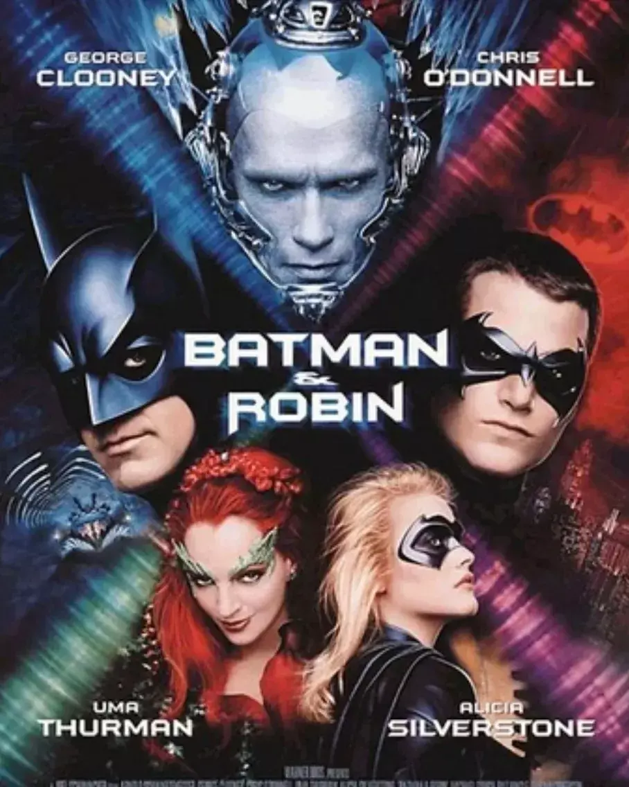 3. "БЭТМЕН И РОБИН" (1997) У Бэтмена есть не только бэтмобиль, но и в этой части ещё бэтсоски. А играет его Джордж Клуни. Фильм словно повторяет комедийный сериал 60-х про супергероя, где наш Бэтмен скачет в тряпошном костюме и панталонах, надетых поверх колготок. Ну и неплохой режиссёр Джоэль Шумахер по сути снял настоящее травести-шоу в кислотных тонах и за 120 миллионов долларов.