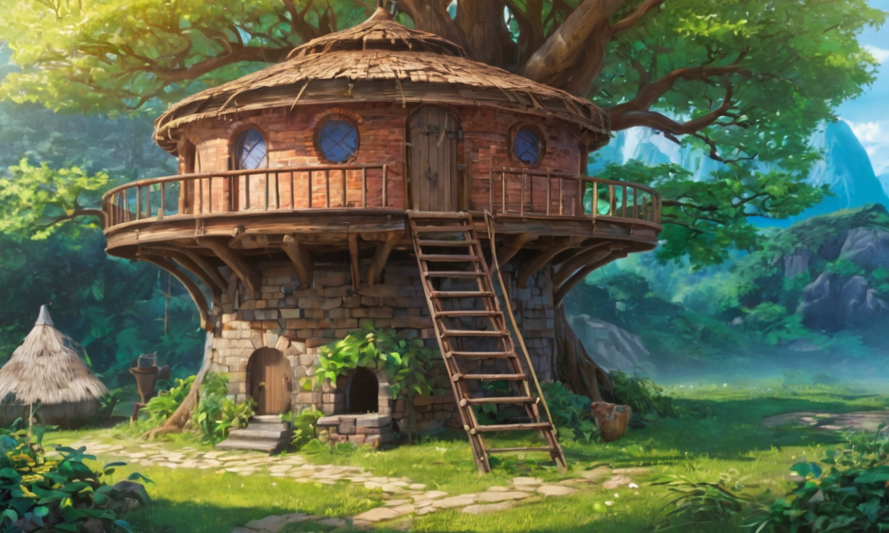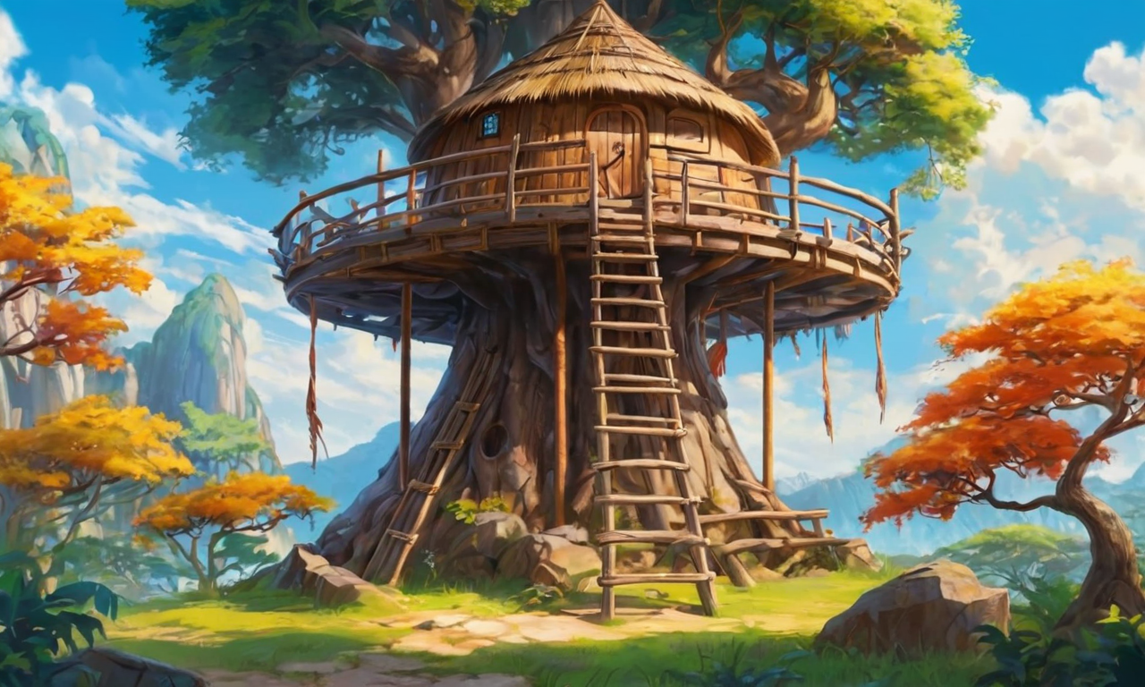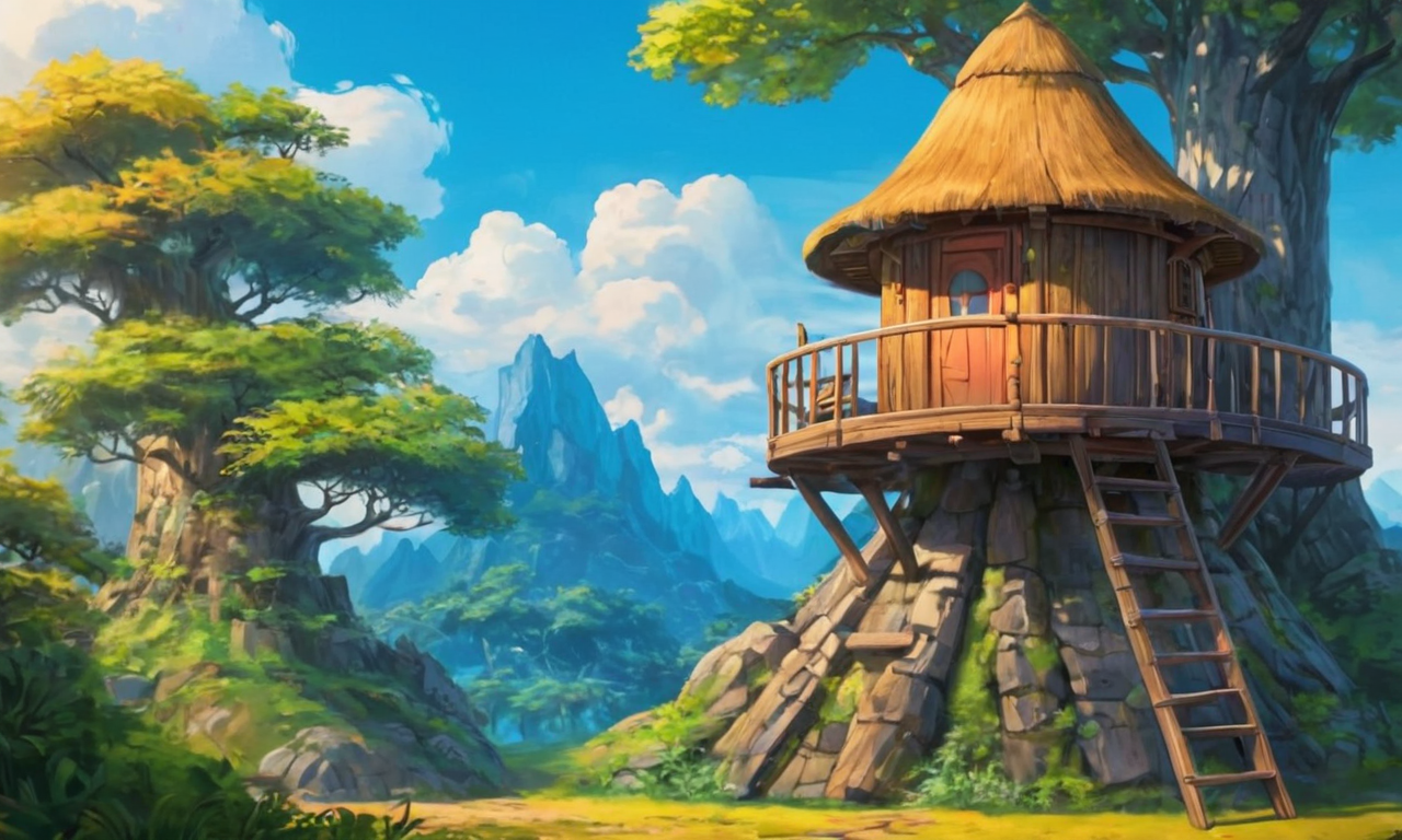 Красивые ИИ фоны. Хижины в лесу и на деревьях. II часть