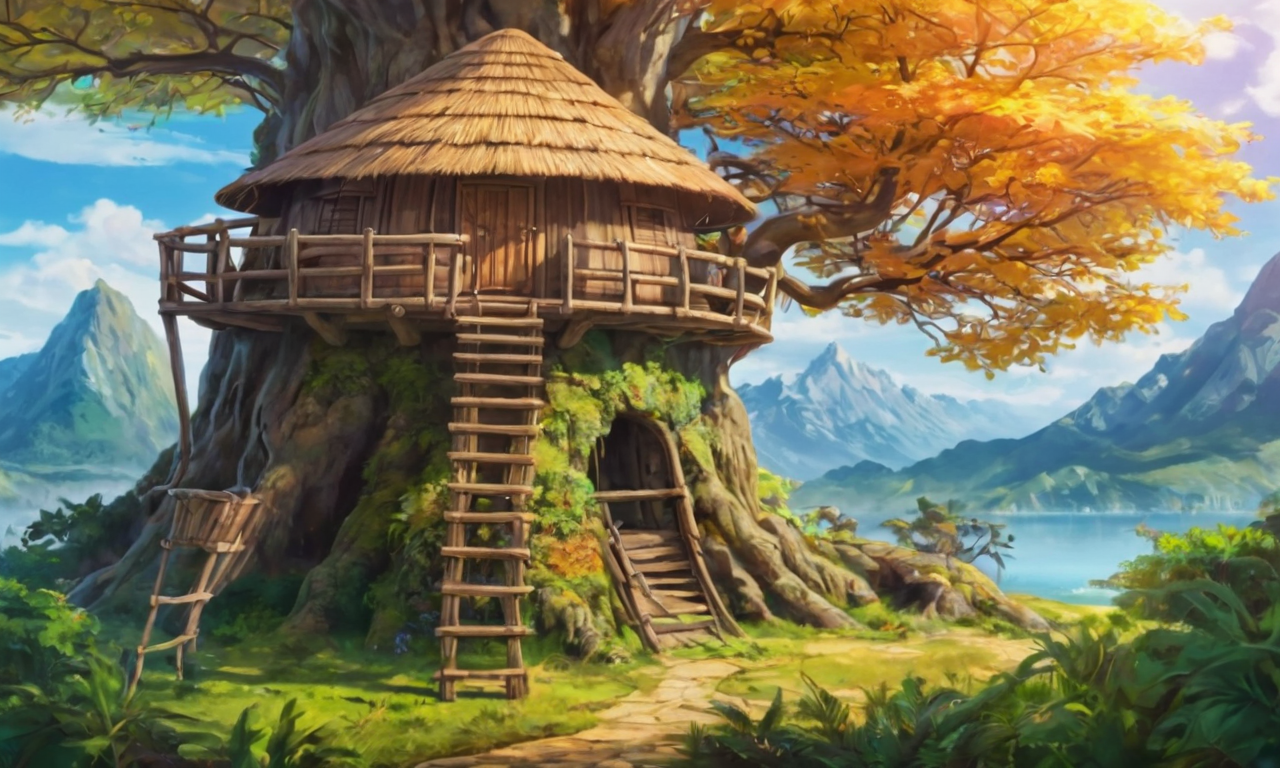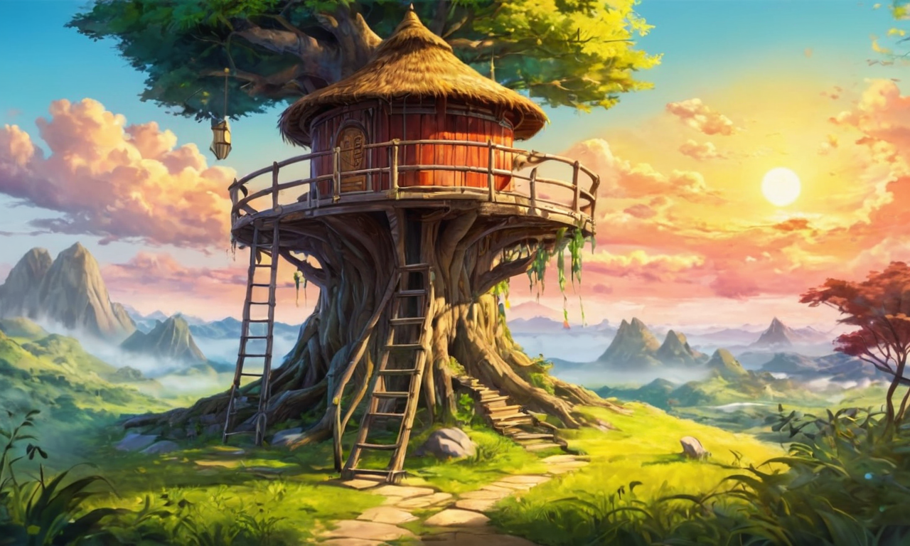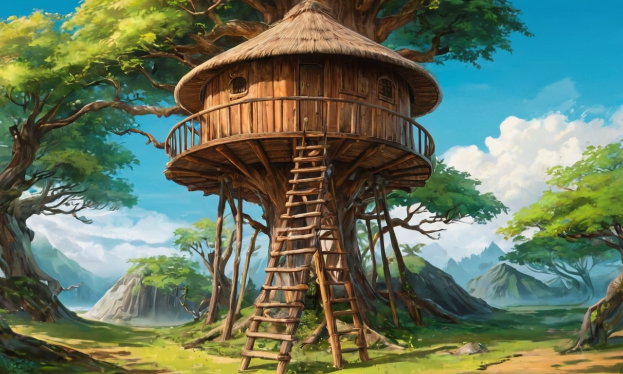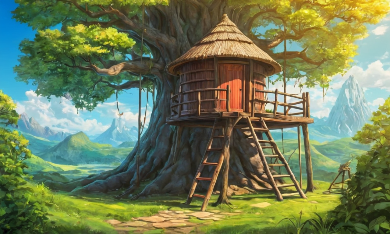 Красивые ИИ фоны. Хижины в лесу и на деревьях. II часть