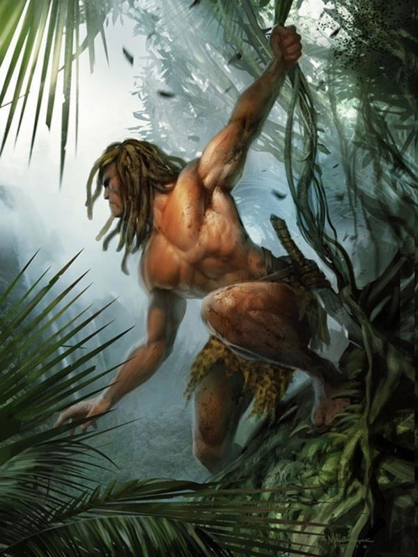 Тарзан сражался с гориллами и бандитами, с пантерами и работорговцами, львами и инопланетянами, дрался с крокодилами в быстрых реках, с ящерами в глубоких озёрах, с дикарями в джунглях, с белыми забытыми племенами великих забытых городов. Тарзан не улюлюкал, побеждая, но ему пришлось это делать, добравшись до кино. Тарзан уходил за приключениями в тёмную прель великих африканских лесов, пересекал пустыни, крался среди саванны, неслышно скользил между мрамором дворцов, оплетённых лианами, и находил сокровища, спрятанные самим временем или плохими людьми.