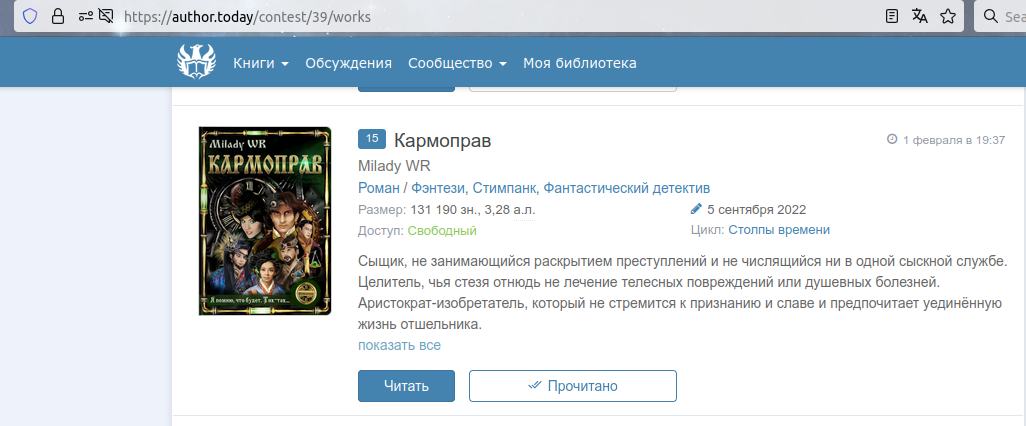 Для меня это не только приятное известие, но также вызов самой себе. Успею ли завершить книгу к сроку? Как расставить приоритеты по творчеству? Получится ли удержать поставленную темой и сеттингом планку? Чуть легче от того, что наработки по тексту есть, и довольно весомые - с нуля начинать не придётся.