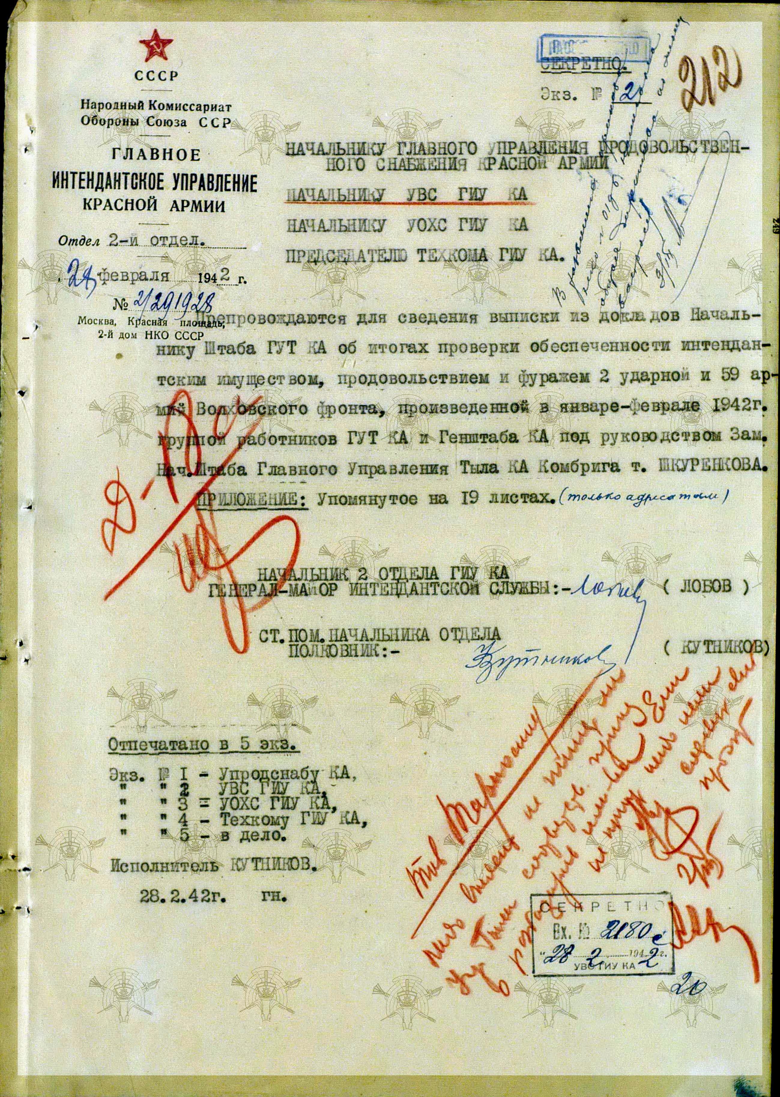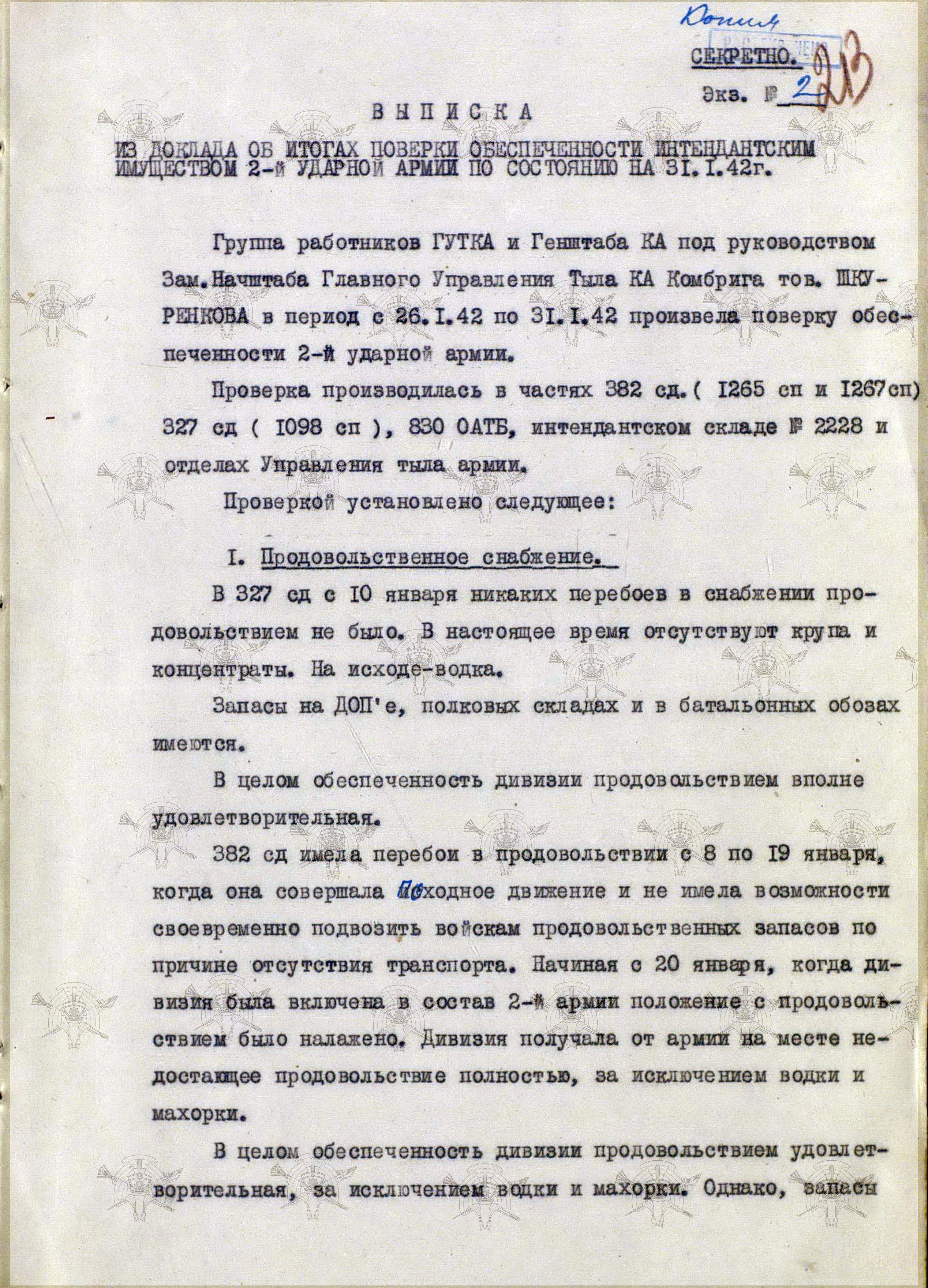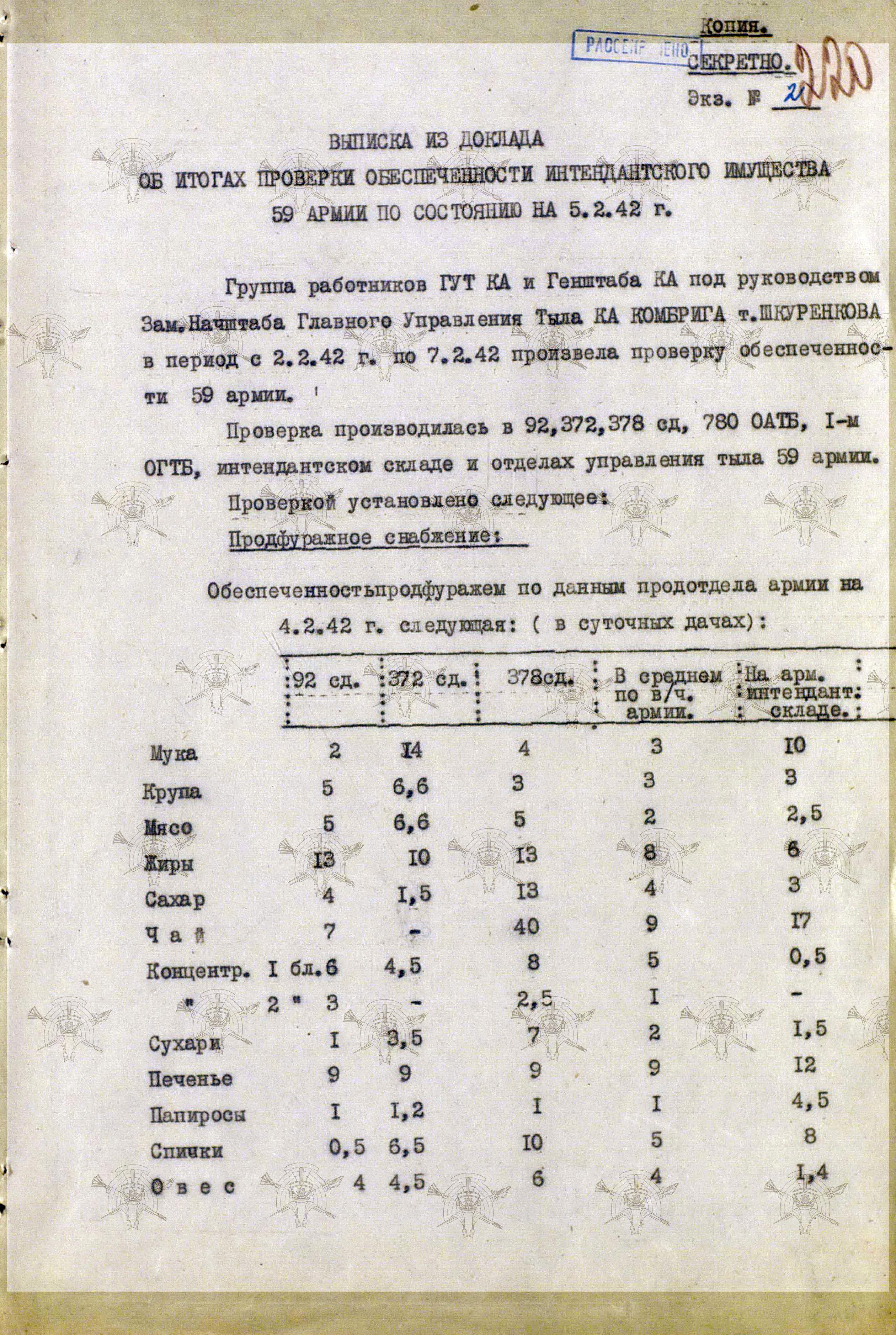 Итоги проверки 2 Ударной и 59 армий Волховского фронта в январе 1942 г.