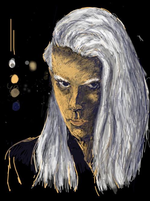 Нашла еще один портрет Грэма, ГГ из романов цикла Двенадцати. Очень быстрая почеркушка, настолько быстрая, что лень было убирать палитру.