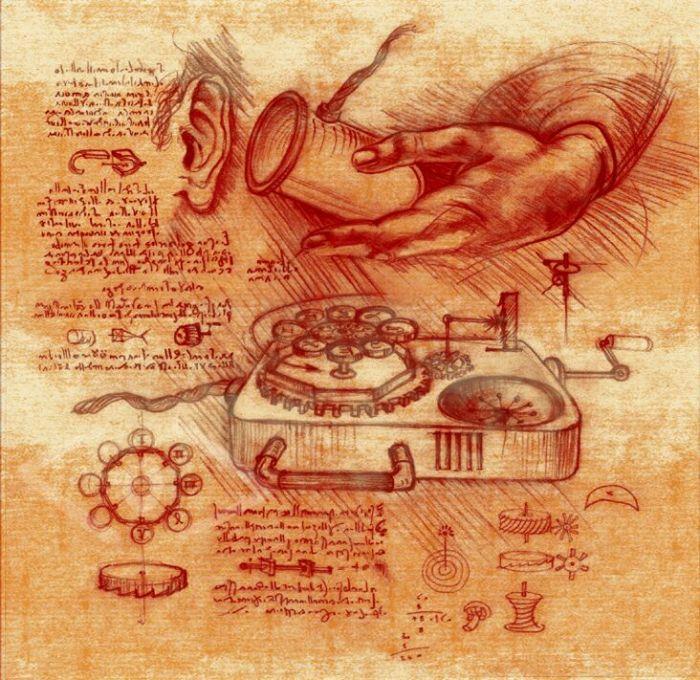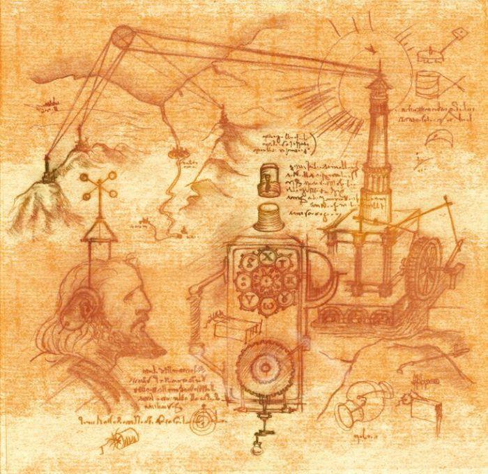 Мне удалось увидеть копии 8-и официально подтвержденных рисунков Рамбальди. Удручает, что записи сделаны на нескольких языках и некоторые записаны символами, но сами схемы, которые мне удалось понять, впечатляют – чего стоит одно изображение радиопередающей вышки с обозначением линий передачи сигнала на портативный приемник! И это было изображено в 15 веке!