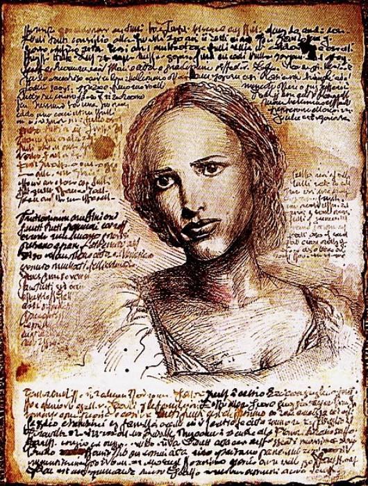Страница 47 имела самое большое значение для Рамбальди. На первый взгляд она казалась пустой, но изображение на ней потом было проявлено специальной жидкостью. На странице он изобразил портрет женщины, которую назвал Избранной.