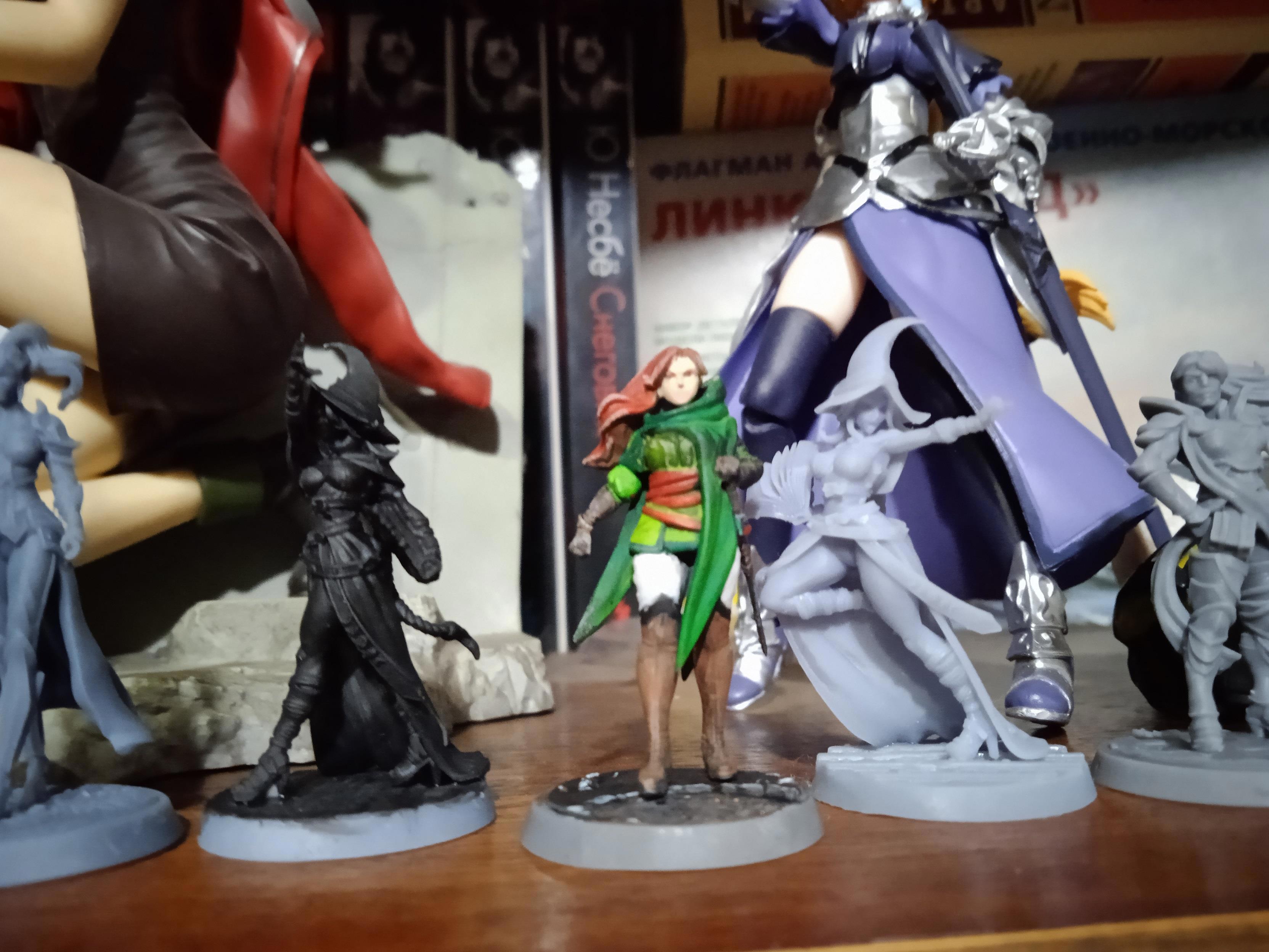 Как я уже писал, недавно на свет родилась моя первая ДнД-фигурка - в облике рыжеволосой героини в зелёном плаще, раскрашенной умелыми руками из городского клуба настолок.