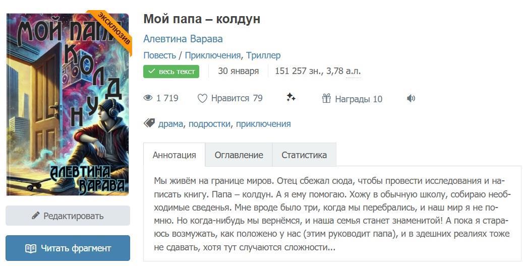 Автор: Алевтина ВараваПрохожу мимо консьержки и коротко киваю ей: матушка учит быть вежливым с людьми. Пока мы тут, нужно жить по их правилам – это очень важно для отца. Хотя мне начинает казаться всё более смешной мельтешня здешних. Немудрено, что матушка сама практически не выходит. Пользуется своим положением и статусом. Они с отцом оставляют грязную работу мне. И, знаете, я этим горжусь! Поверьте, мне будет что рассказать, когда мы возвратимся в Астандэй! Хотя, увы, это будет нескоро. У отца ещё очень много работы.