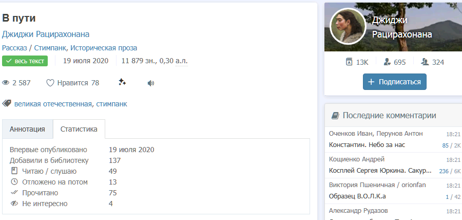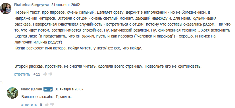 Пост, в котором мы с авторами представили тексты, набрал тысячу просмотров - то есть хорошая была большая аудитория. Многие люди откликнулись на просьбу оценить тексты.