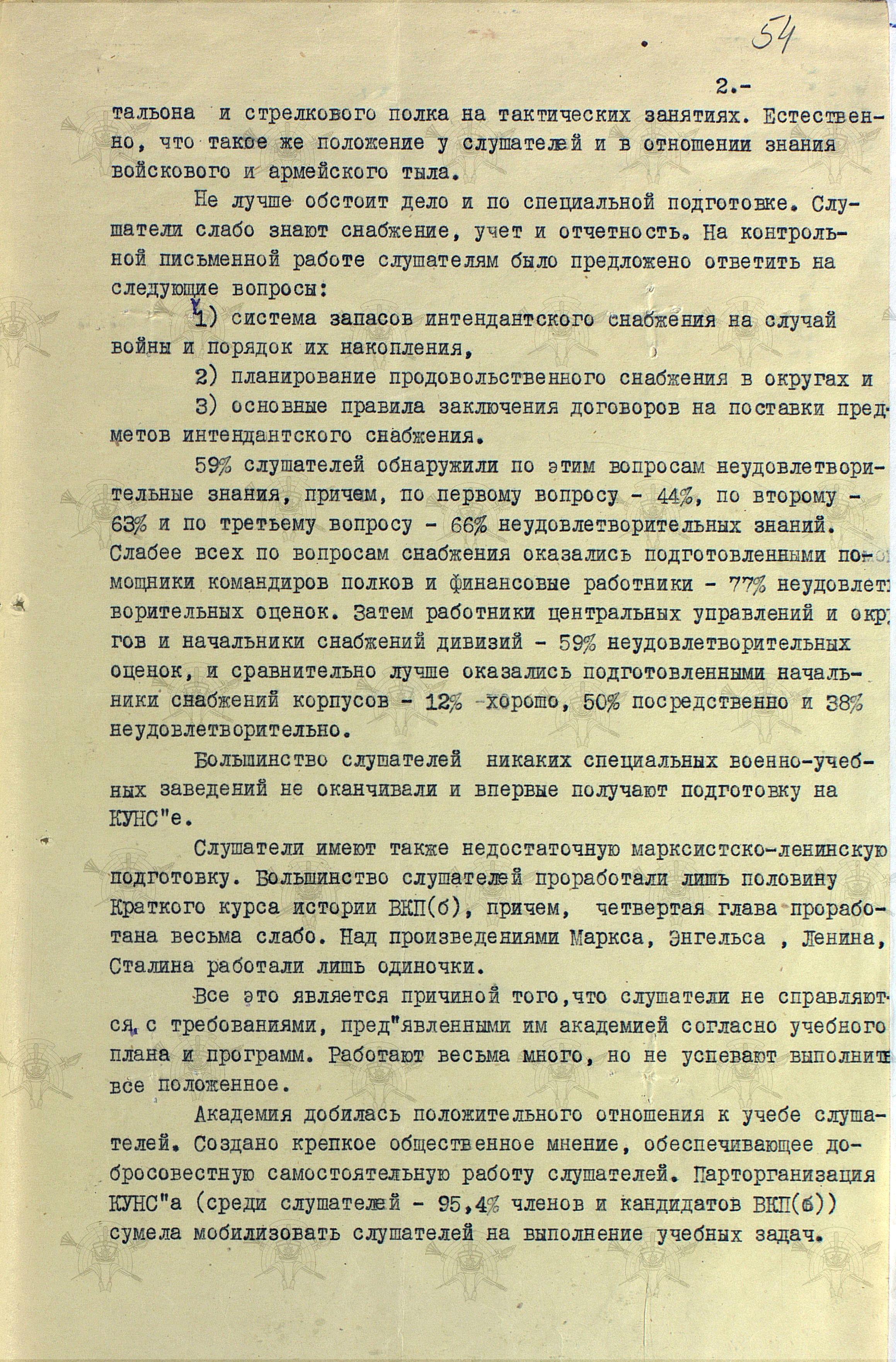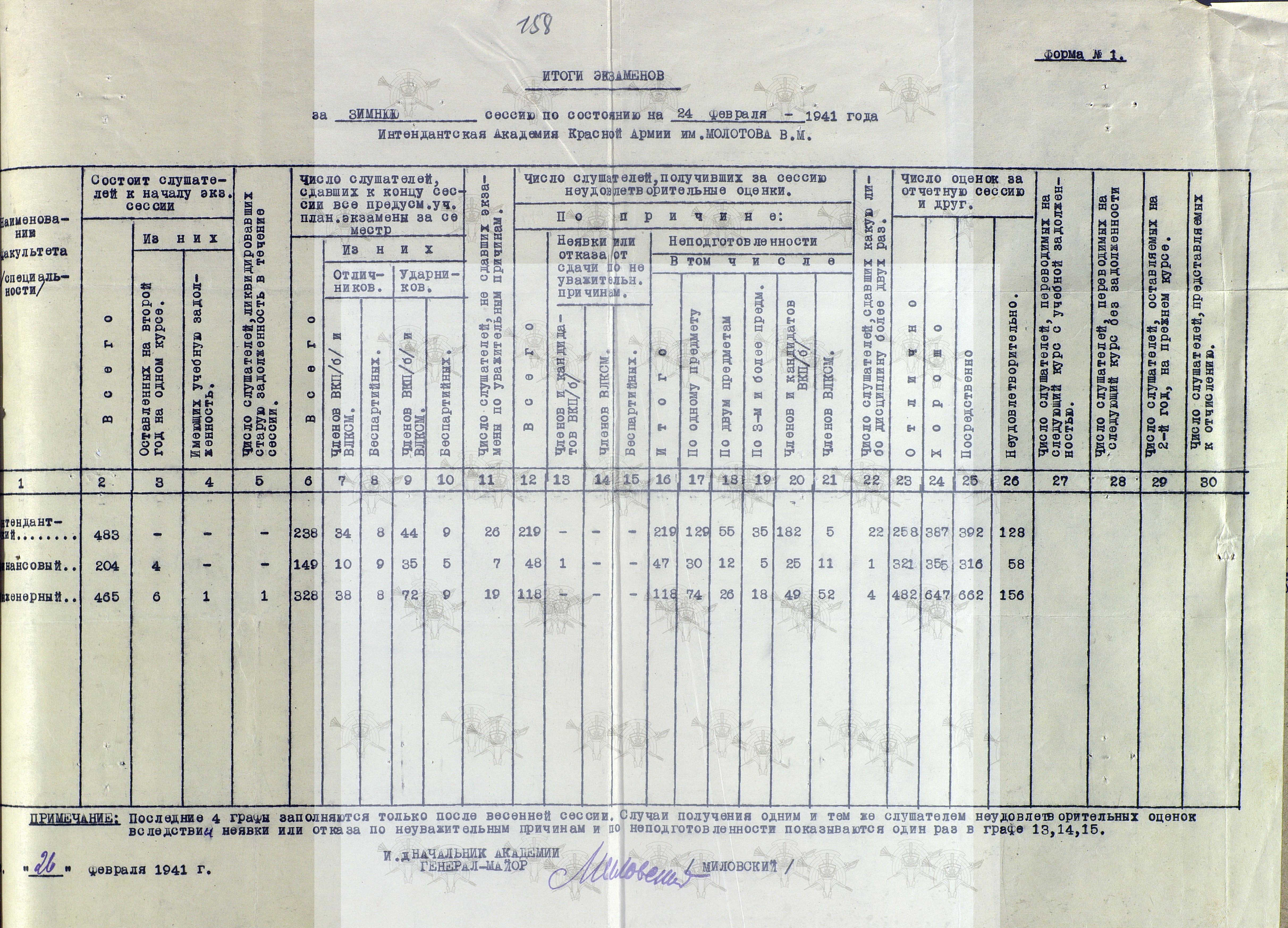 А может всё дело в требовательности преподавателей? Такое обилие "неудов" очень непривычно, применительно к слушателям Академии. Нет, если бы речь шля о курсантах Ярославского интендантского училища - вопросов бы не было, но здесь же уже зрелые люди, начсостав. И что интересно, среди беспартийных двоечников и нет. Кстати, а откуда в Академии вообще взялись беспартийные? Нам же несколько десятков лет твердили, что без вступления в партию, в Сталинском СССР карьеры не построишь. Ан нет, оказывается можно было быть не членом партии и даже не комсомольцем и при этом спокойно учиться в ВУЗе. Видимо правы те, кто утверждал, что как раз в те времена, для того чтобы вступить в ВКП (б) надо было немало постараться и убедить партийную комиссию в том, что достоин.