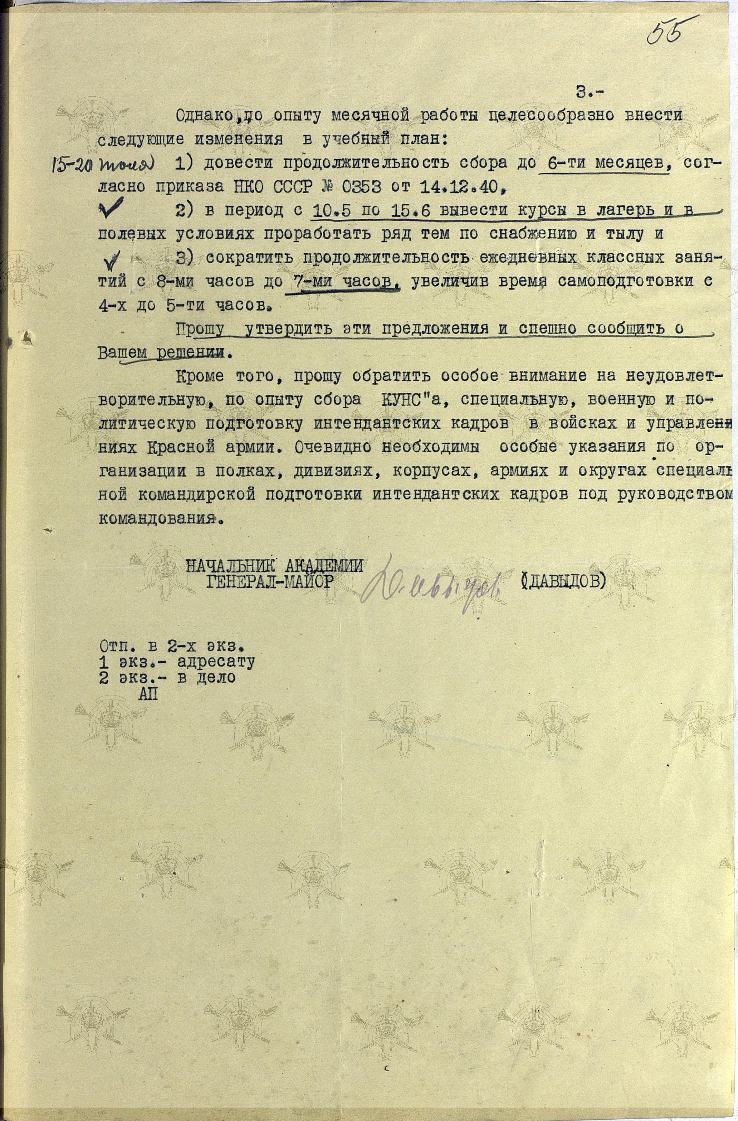 Позднее, в феврале и марте 1941 г., Академия направит ряд предложений по дальнейшему улучшению процесса обучения, включению в него практических занятий на всех, имевшихся в Красной Армии средствах связи, по топографии, другим предметам. Предложения грамотные, продуманные, приближенные к практике, учитывающие опыт Зимней войны. И всё в них замечательно, если бы не одно но. Всё это надо было начинать раньше, намного раньше...
