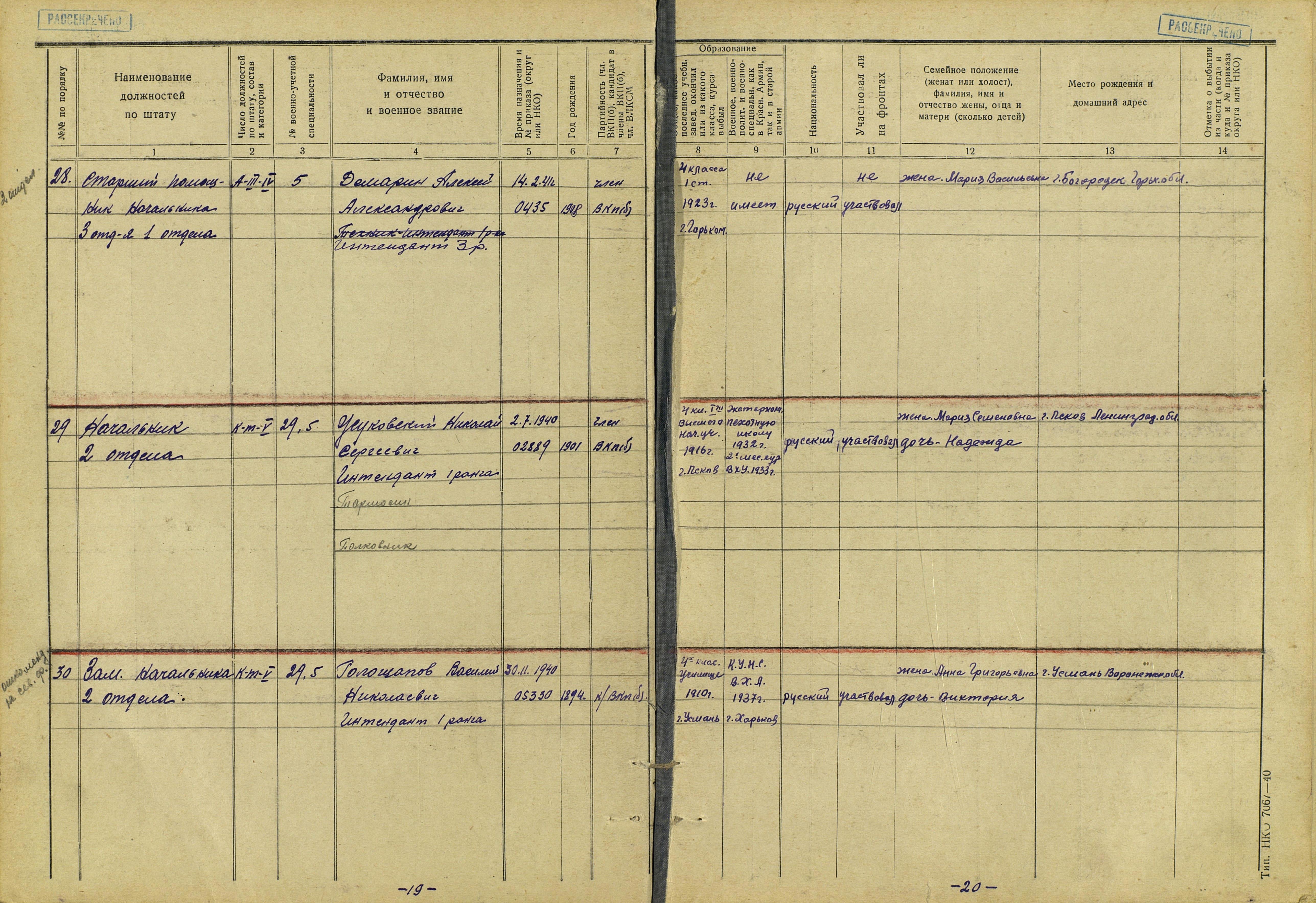 О недостаточном уровне образованности командного и начальствующего состава не писал только ленивый. Чаще всего, «историки — правдорубы» сетуют на то, что репрессии унесли самые образованные кадры, оставив сплошных недоучек, и это то и послужило успехам германцев и поражениям Красной Армии в 1941 году. Все доводы о том, что перед войной РККА увеличилась в разы, и для этого пришлось призывать кадры из запаса, отметаются сходу, как несущественные. Мне стало интересно, как же обстояли дела в центральном аппарате НКО, и я решил сделать выборку на примере одного Управления. Анализировалась биография 105 военнослужащих (всех, кто служил в управлении, по состоянию на январь–октябрь 1941 год). Для работы использовалась Книга учёта начальствующего состава. Если кто-то такого документа не встречал, то на примере одной из страниц можно узнать, какие сведения в неё включались: