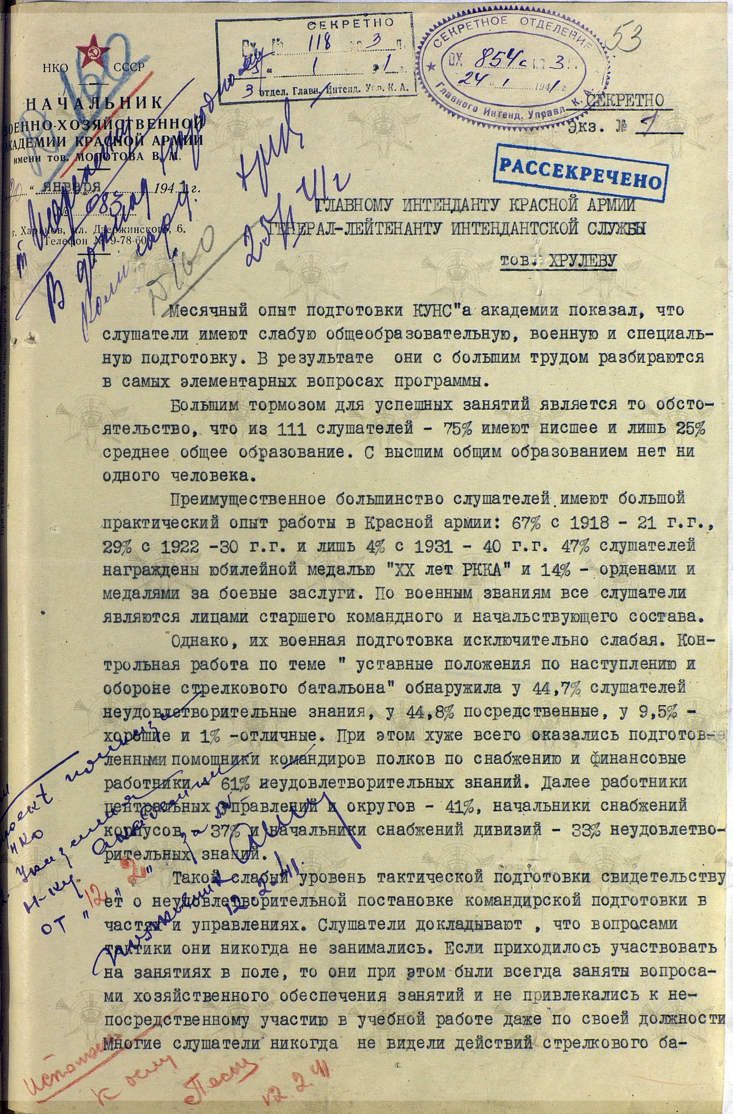 Об одних таких курсах, развёрнутых Военно-хозяйственной академией Красной Армии, мы сегодня и поговорим. И если сведения об общем образовании особых вопросов не вызывали, на курсы назначили старший комсостав, большая часть которого обучалась ещё до революции, а после - Первая мировая, Гражданская, банды там всякие, басмачи, в общем - не до учёбы. Понятно, что люди занимались самообразованием, иначе до своих должностей им бы не дорасти. и никакой блат бы не помог.