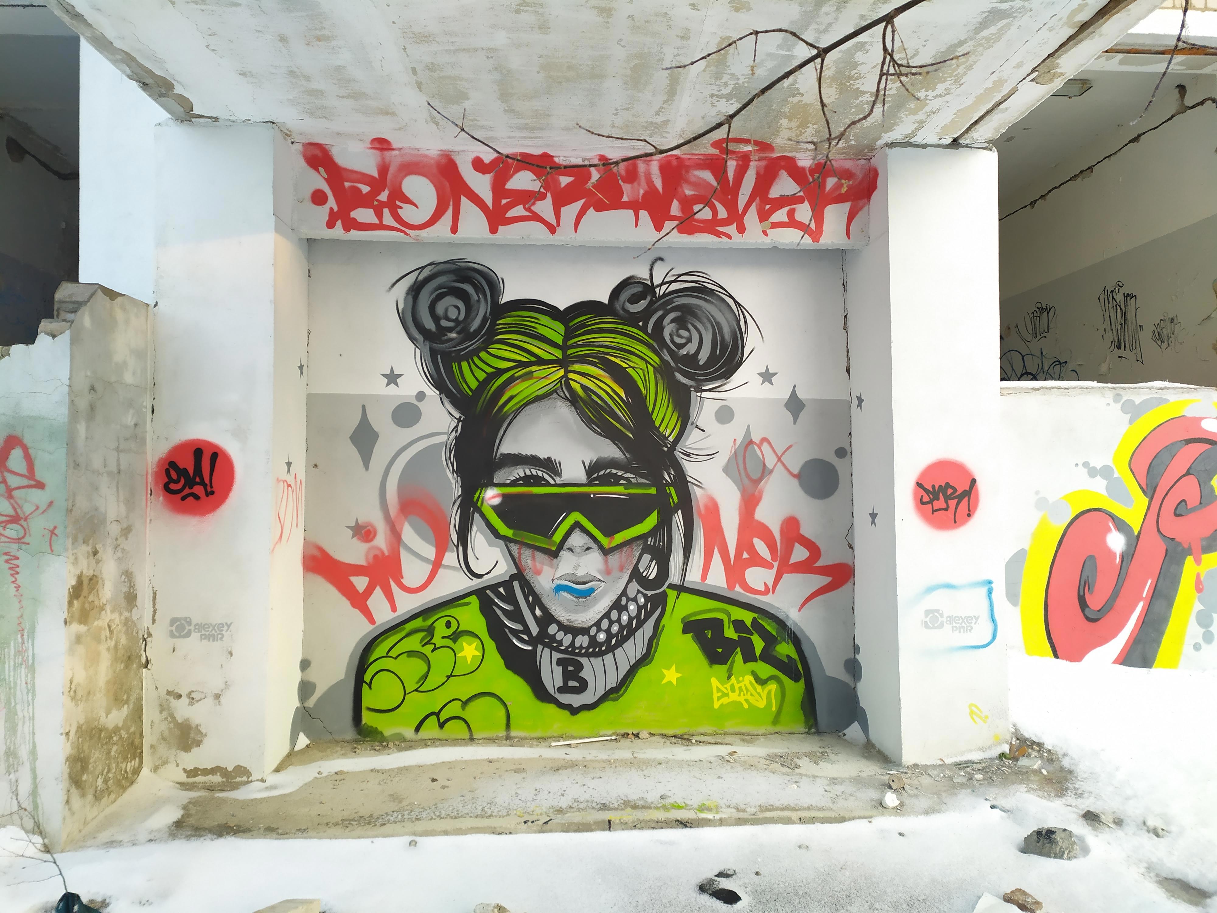 Местные граффити варьируются от самых примитивных, на уровне надписей на забрах и задних партах, до настоящих произведений искусств.