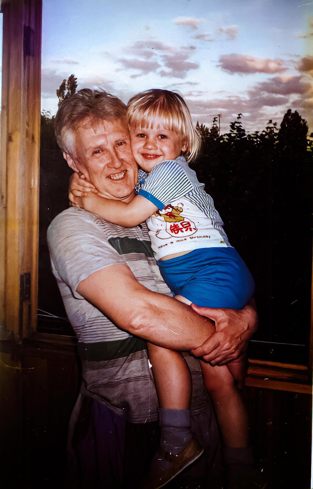 А вот это до сих пор одна из моих самых любимых детских фотографий. С дедушкой. Было очень тепло.