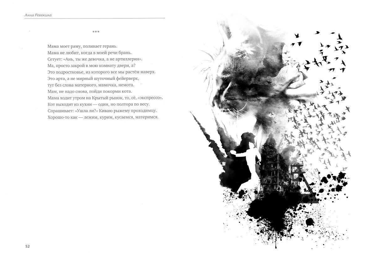 Я не рецензент, и все слова, что просятся с языка, никак не отражают моего впечатления. Издание дважды задевает чувства – дуэт поэтессы Анны Ревякиной и художника-иллюстратора Юлии Толстоусовой бьют точно в цель. Словом – мастерски, как умеет только Анна. Кистью – снайперски, как умеет только Юлия. Быть может, я предвзята, но стихами Анны и работами Юлии я восхищаюсь не первый год. Это живое, выстраданное, если и кажущееся обманчиво легко созданным искусство, рождённое фронтовым Донецком и реалиями передовой.