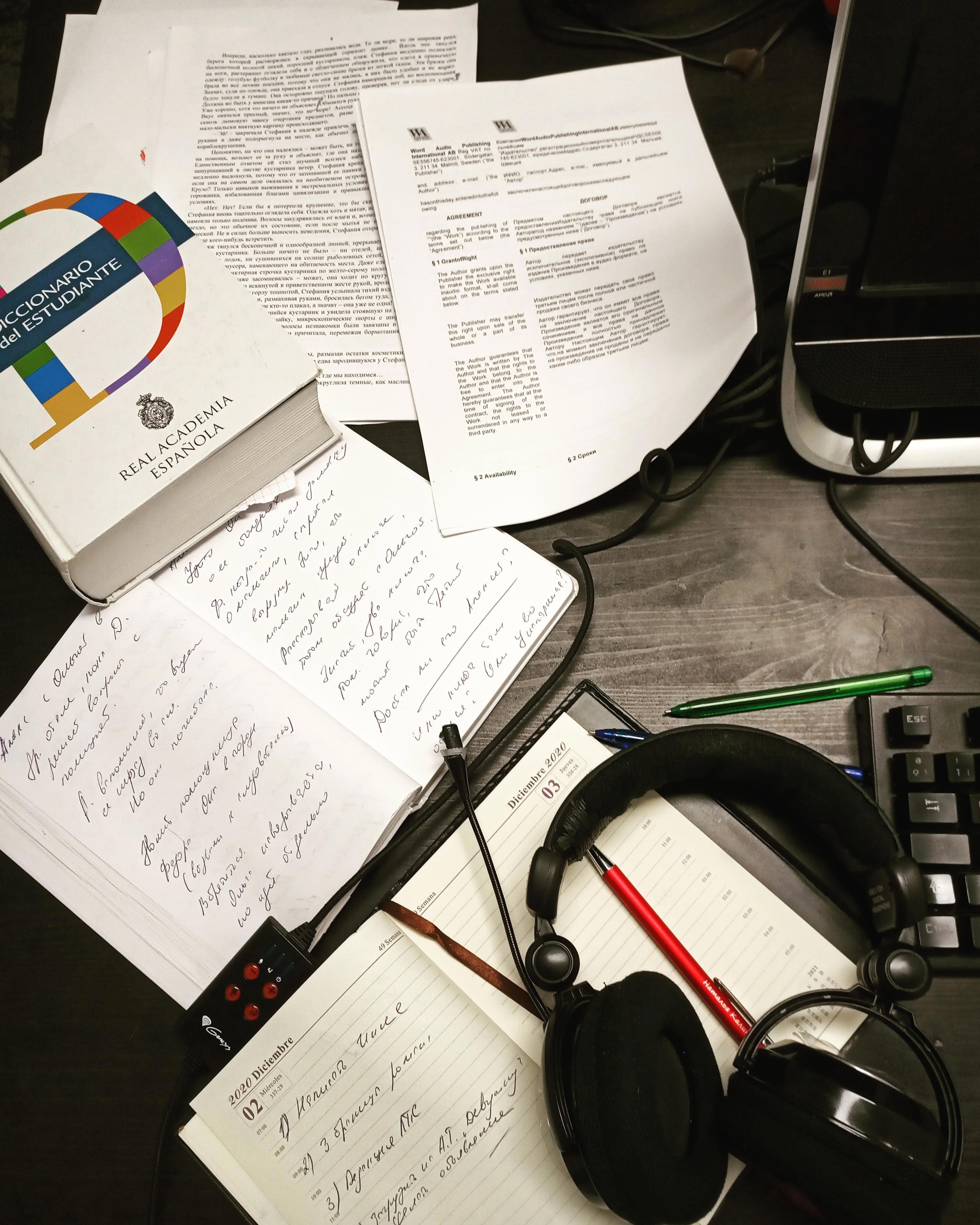 Распечатка первых двух глав одного из романов и испанский словарь. Работаю над переводом. Надеюсь, это станет ещё одной открывшейся для меня дверью.